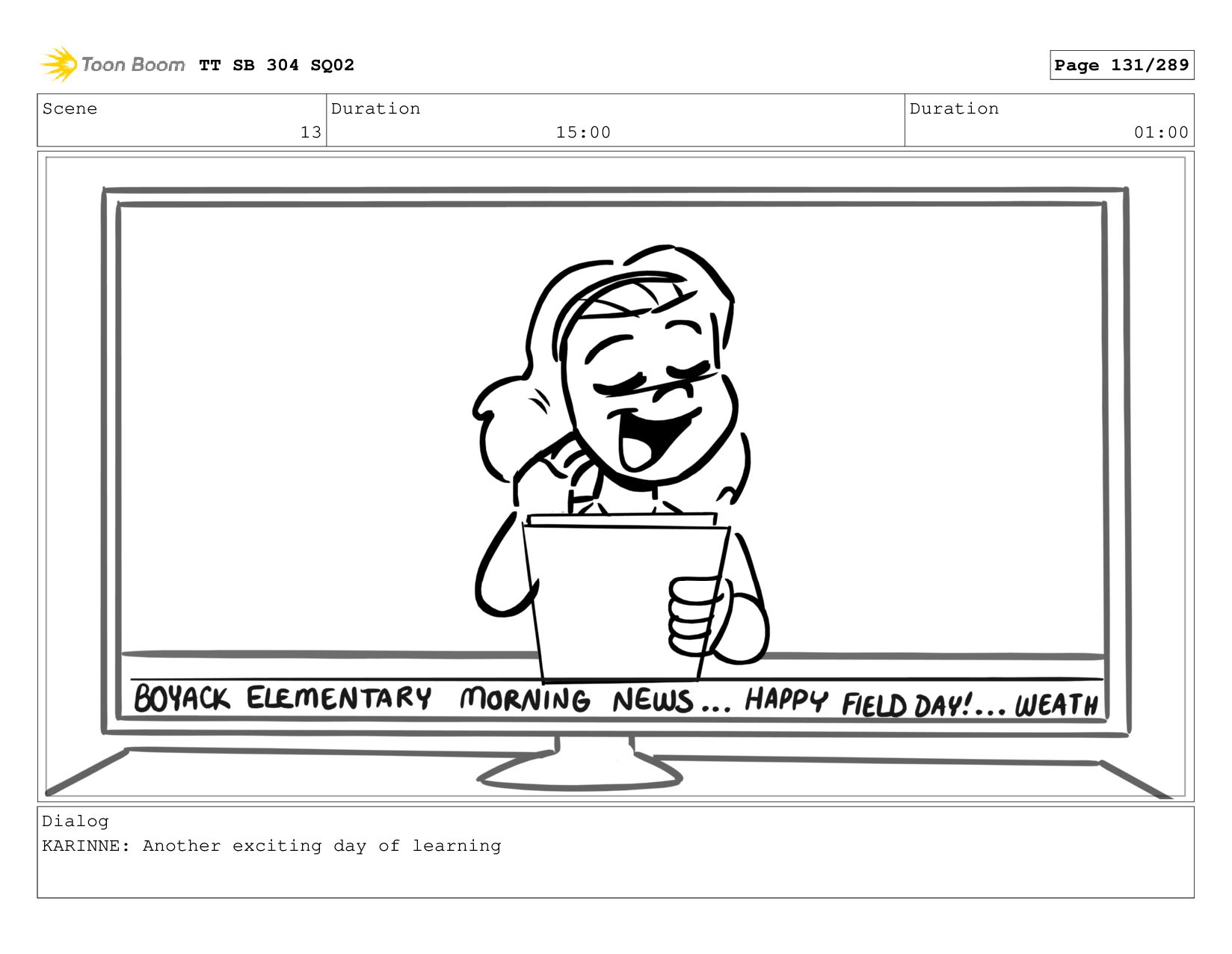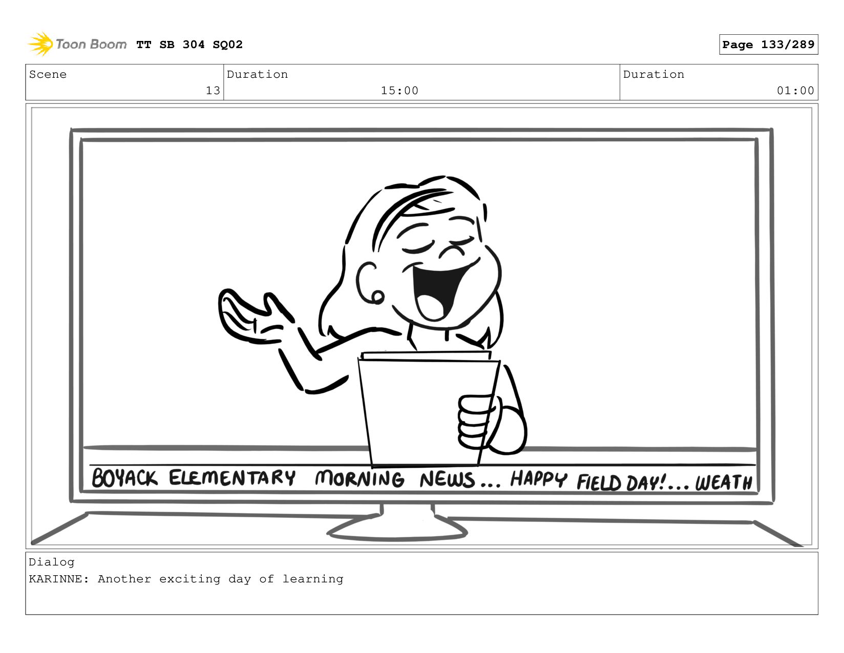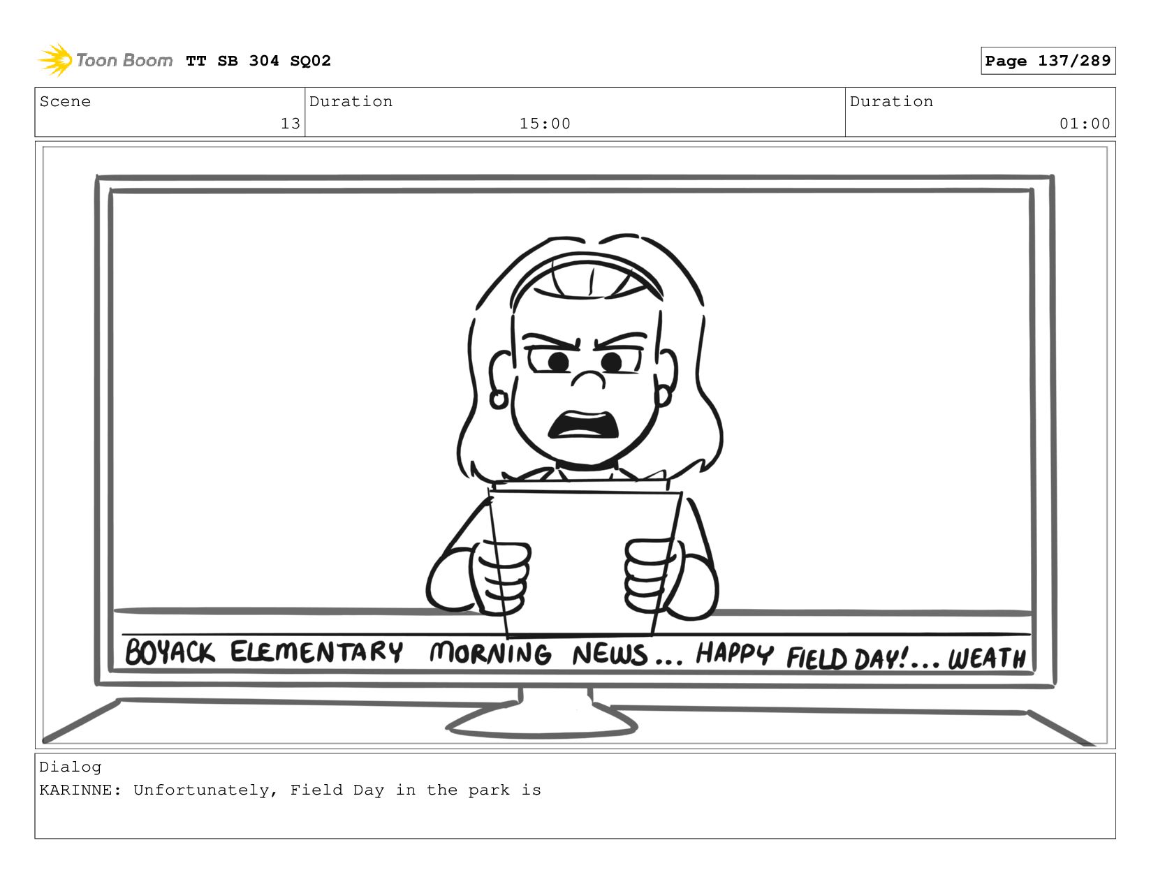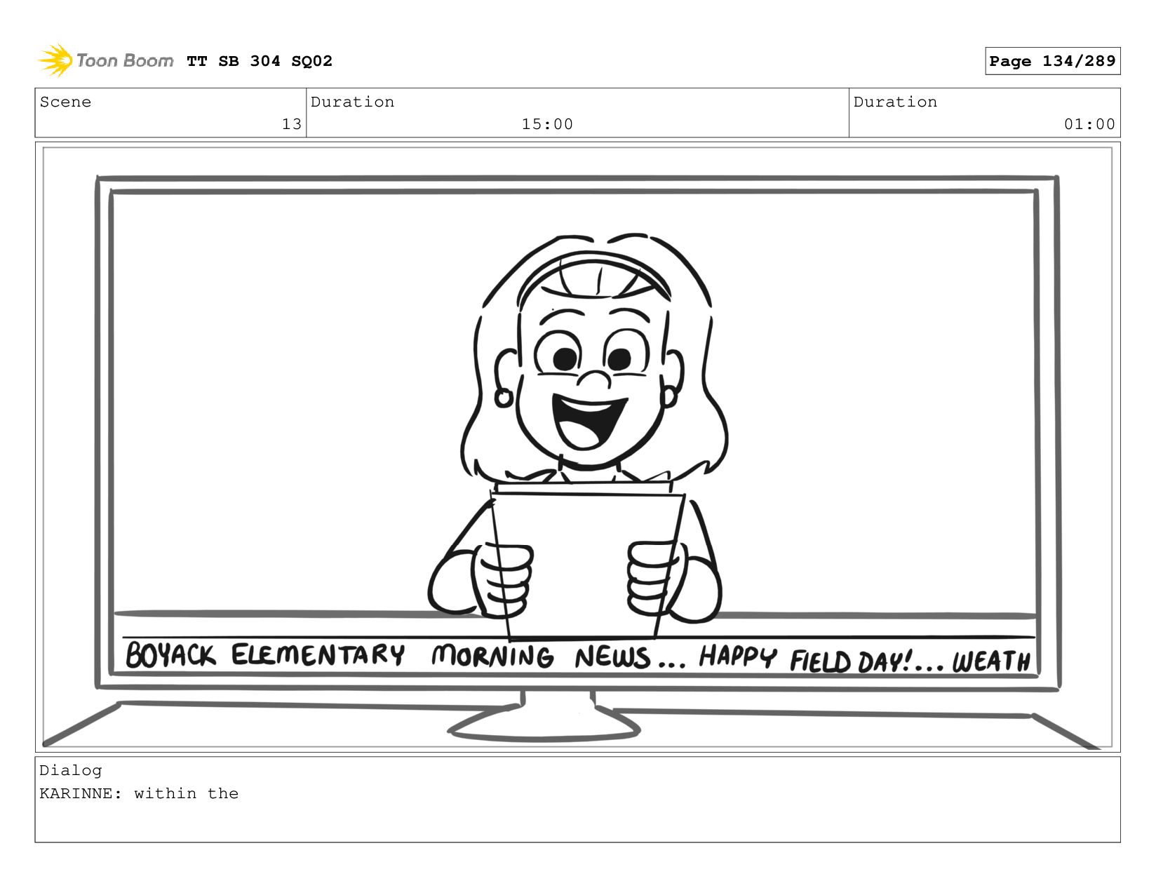 Scene 1_A Duration 07:00 Duration 01:00 Dialog KARINNE: Coming up
