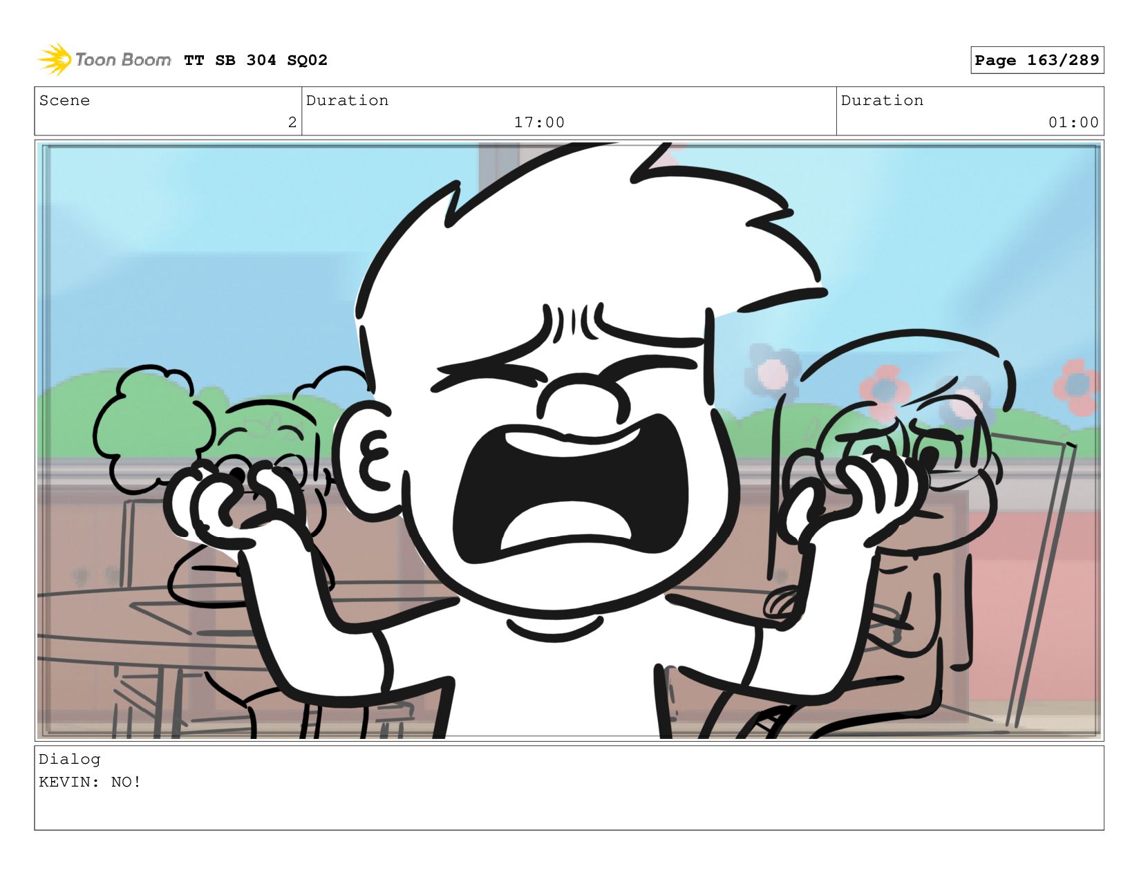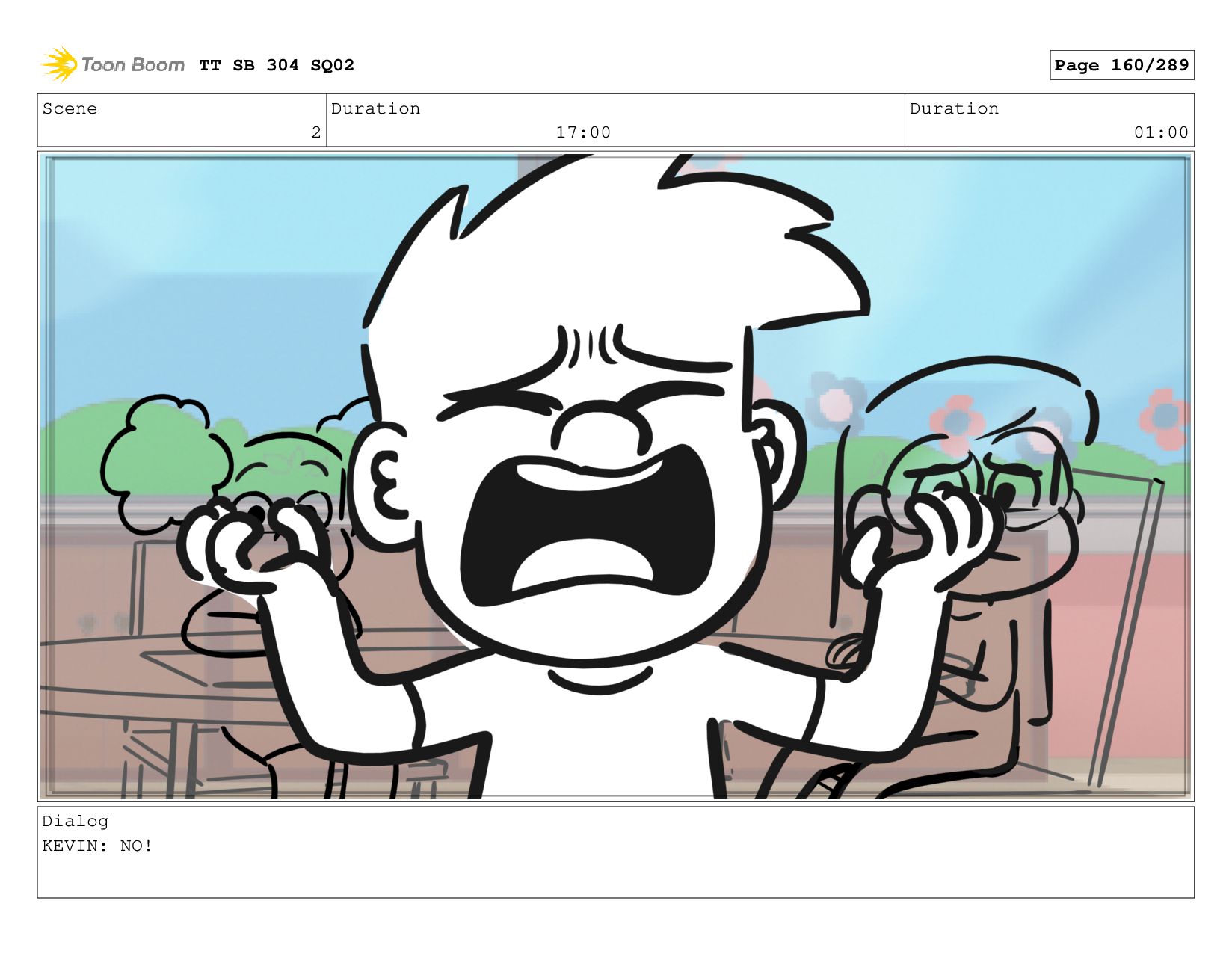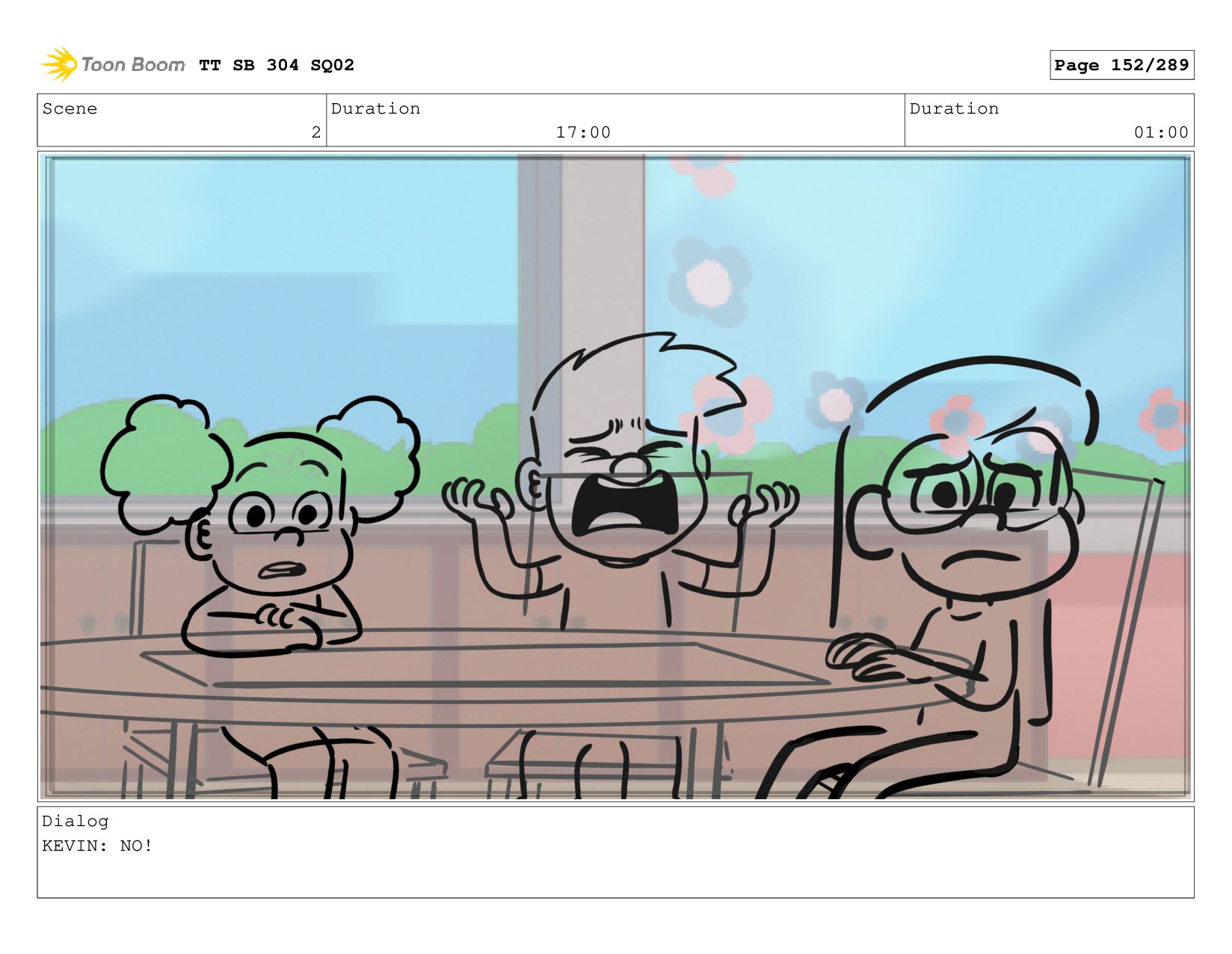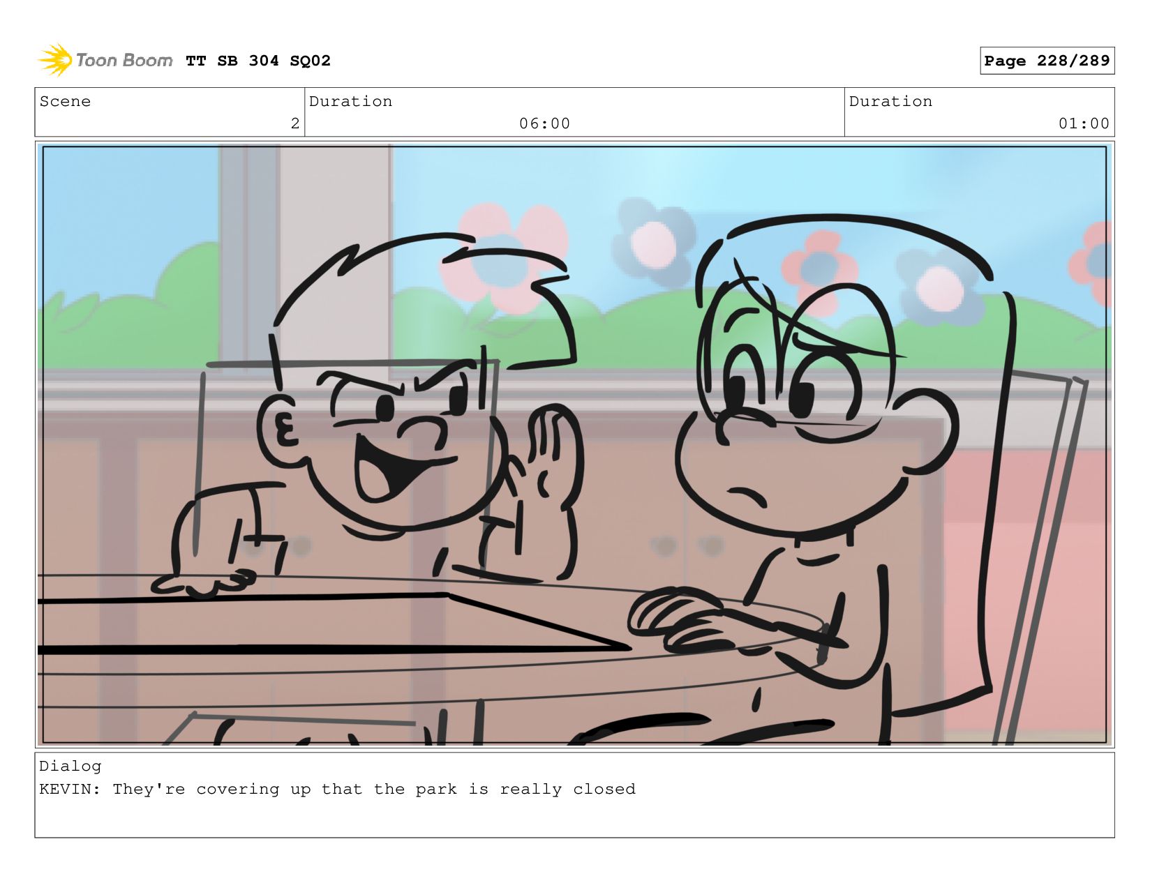 Scene 2 Duration 06:00 Duration 01:00 Dialog KEVIN: They're covering