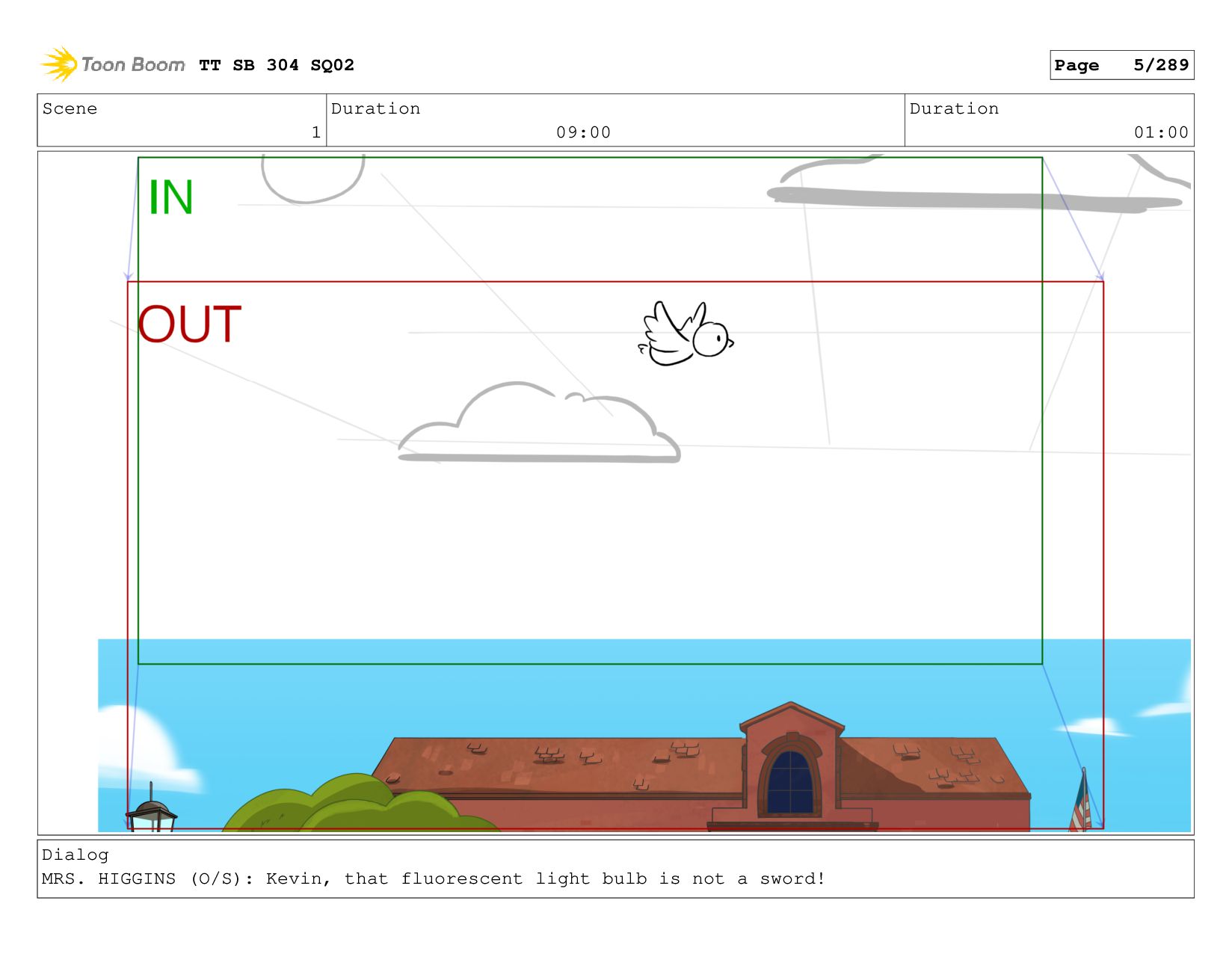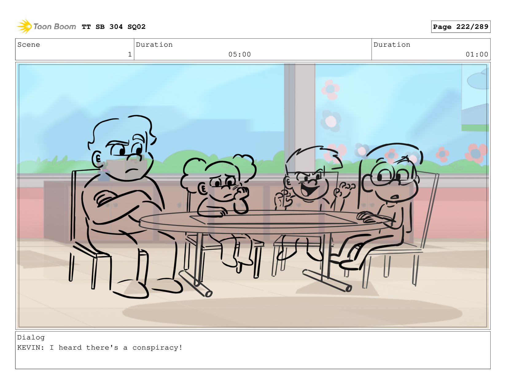 Scene 1 Duration 05:00 Duration 01:00 Dialog KEVIN: I heard