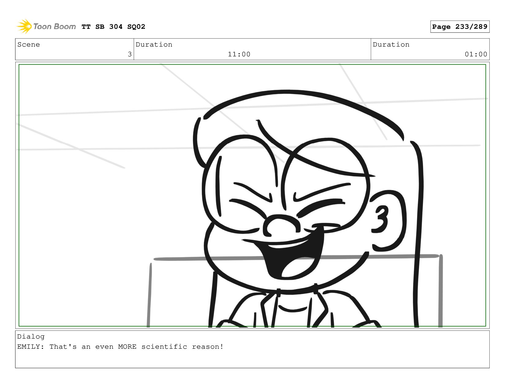 Scene 3 Duration 11:00 Duration 01:00 Dialog EMILY: Ooo! TT