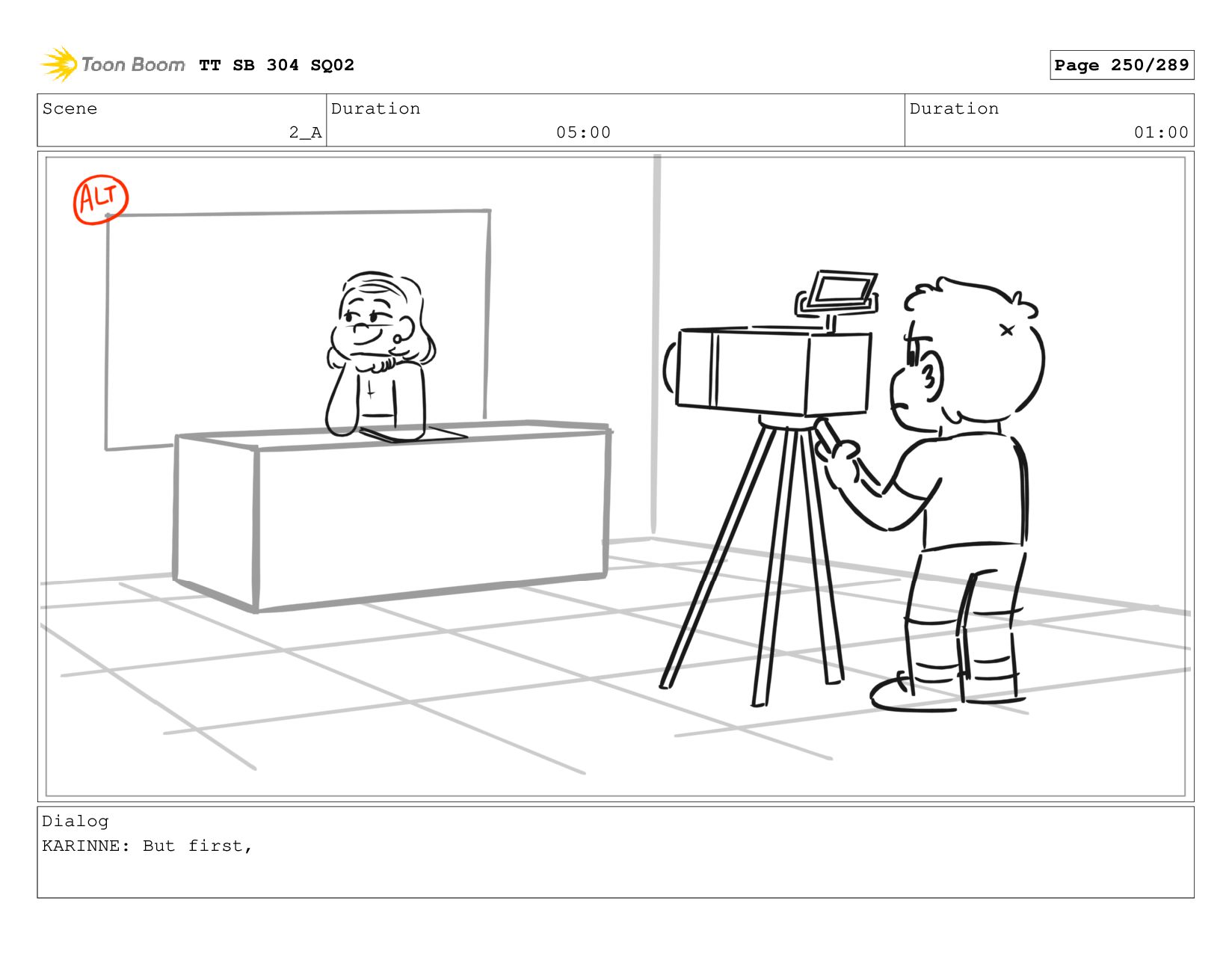 Scene 2_A Duration 05:00 Duration 01:00 Dialog KARINNE: But first,