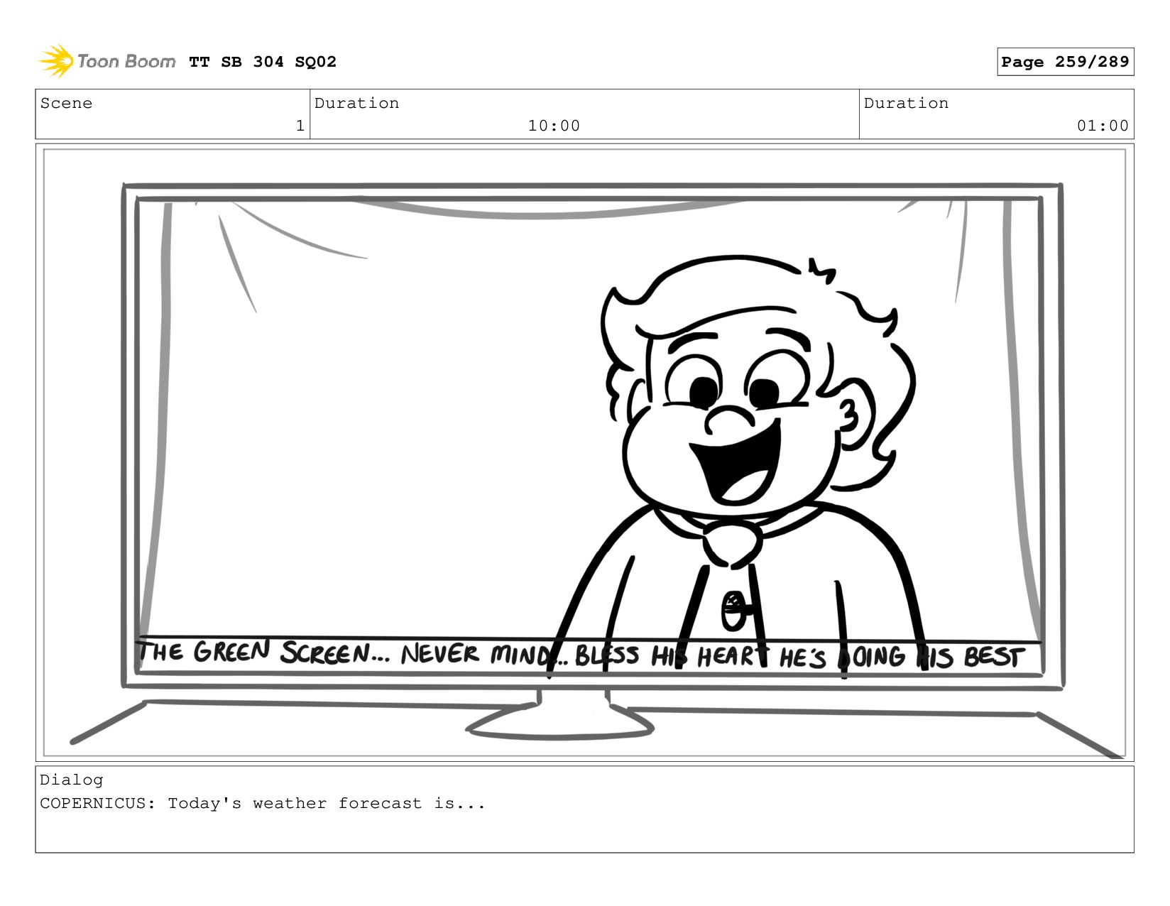 Scene 1 Duration 10:00 Duration 01:00 Dialog COPERNICUS: Today's weather