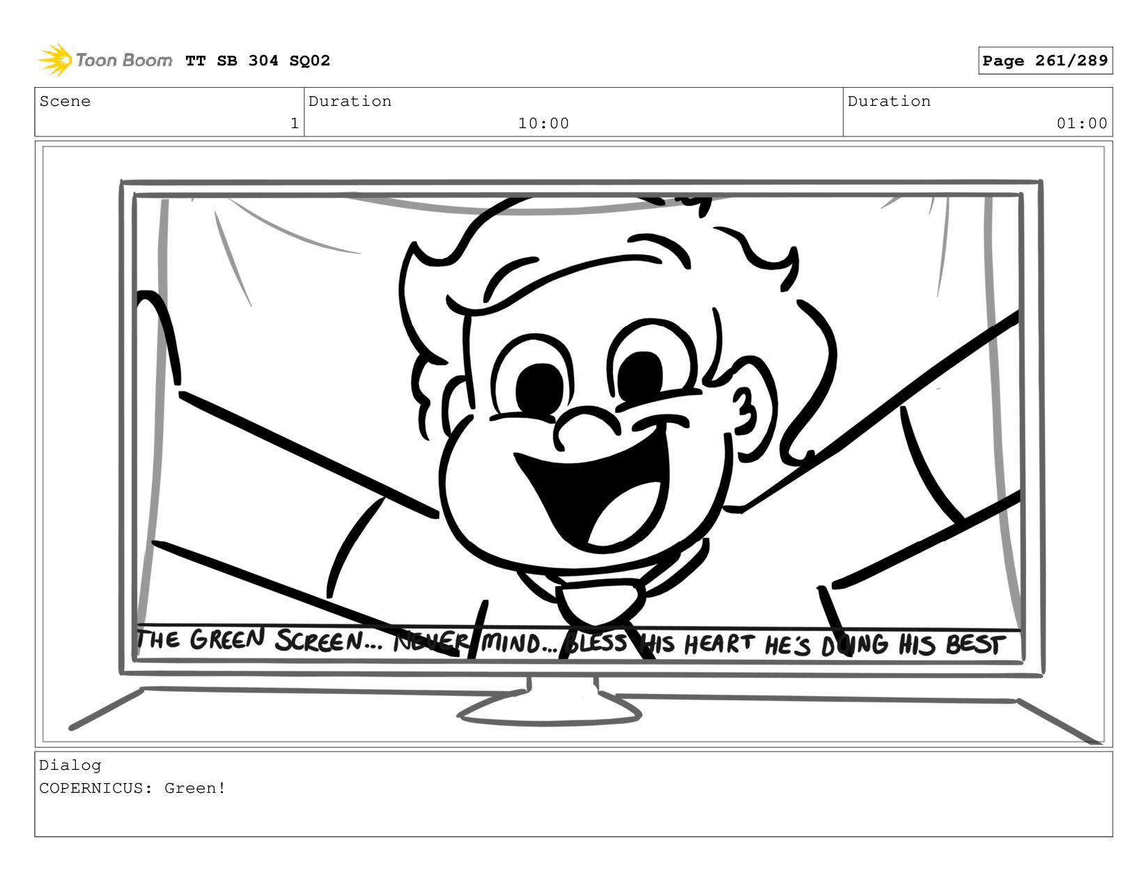 Scene 1 Duration 10:00 Duration 01:00 Dialog COPERNICUS: Green! TT