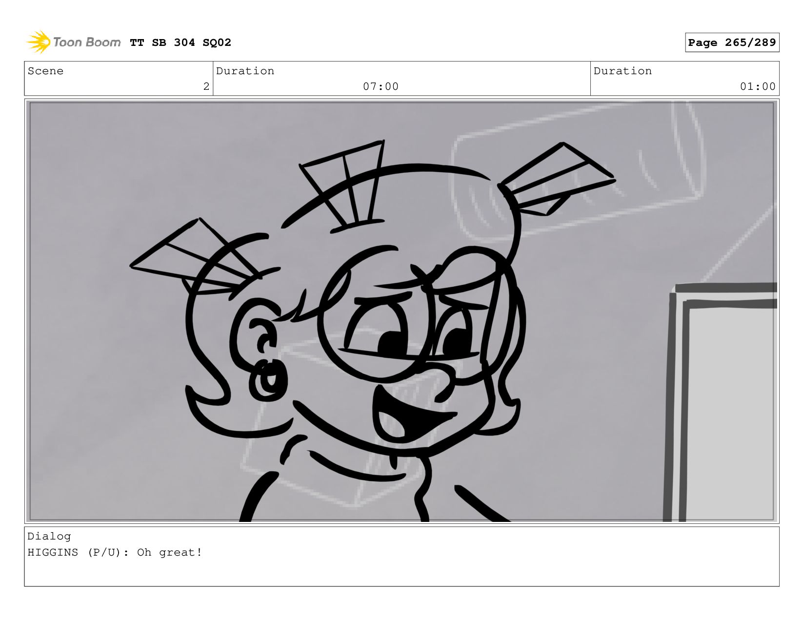 Scene 2 Duration 07:00 Duration 01:00 Dialog HIGGINS (P/U): Oh