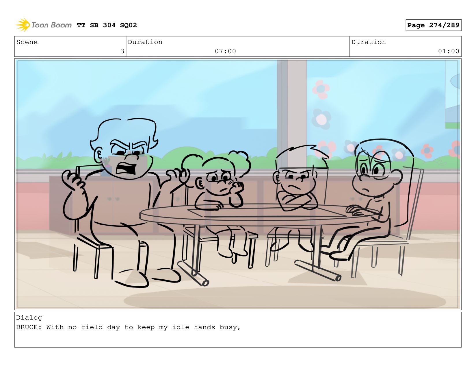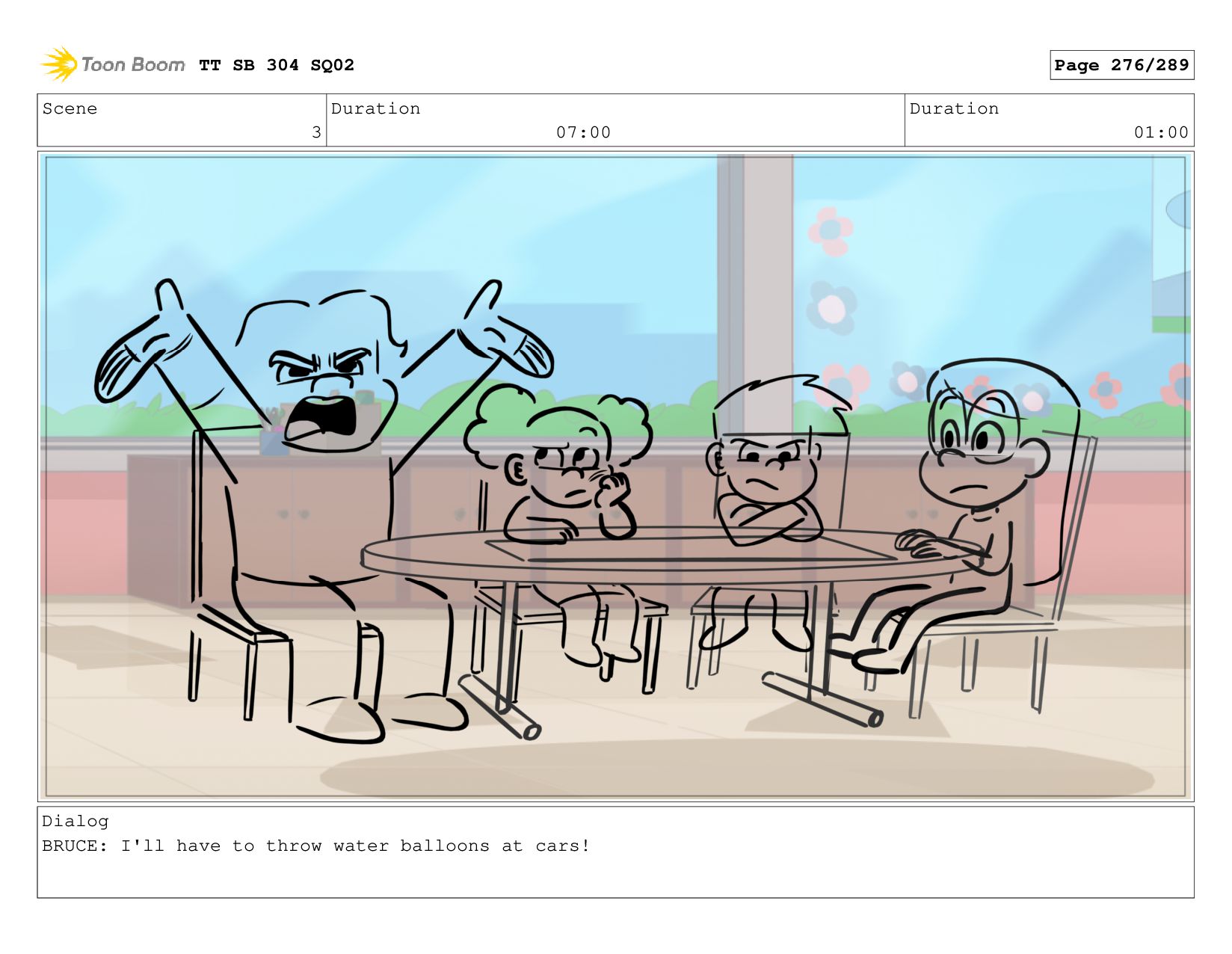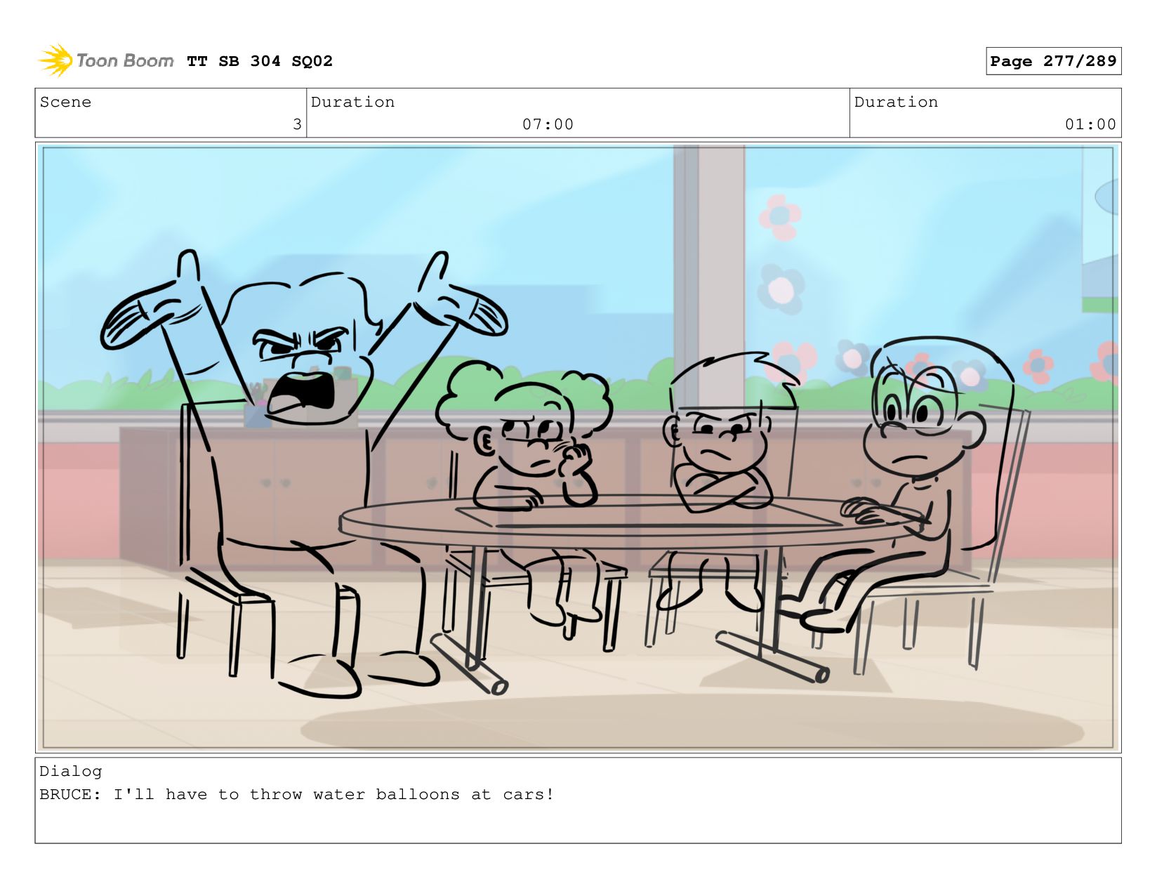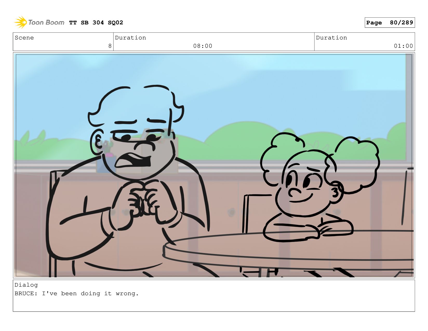 Scene 5 Duration 09:00 Duration 01:00 Dialog BRUCE: Hrmph. TT