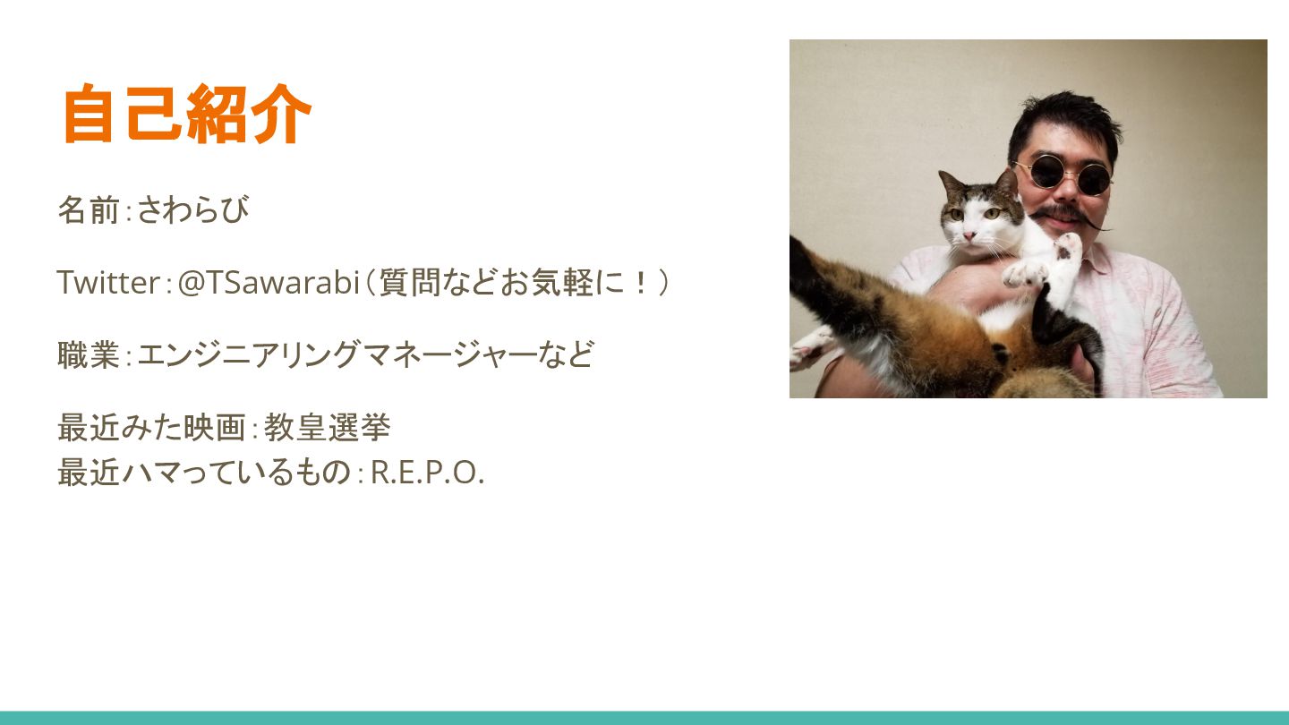 名前:さわらび Twitter:@TSawarabi(質問などお気軽に!) 職業:エンジニアリングマネージャーなど 最近みた映画:教皇選挙 最近ハマっているもの:R.E.P.O. 自己紹介
