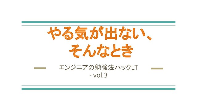 やる気が出ない、 そんなとき エンジニアの勉強法ハックLT - vol.3