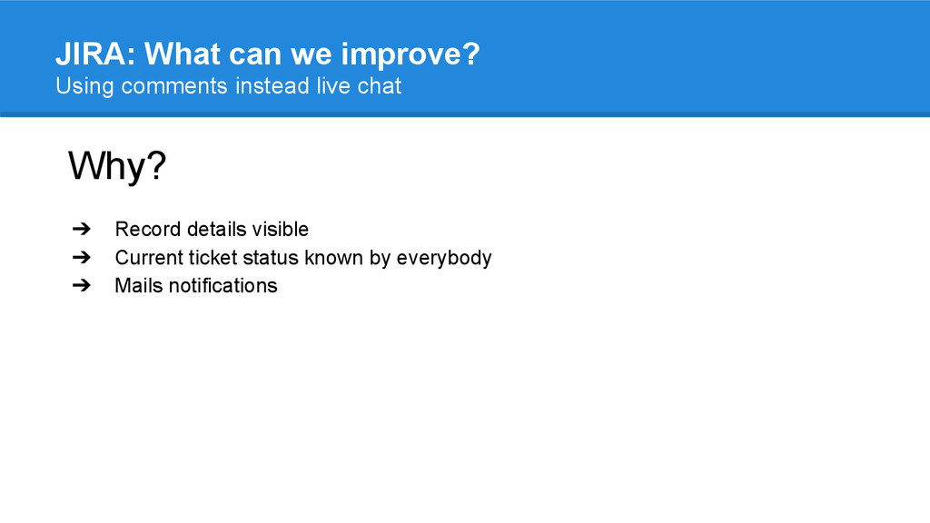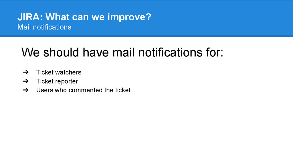 JIRA: What can we improve? Mail notifications Why? ➔ You