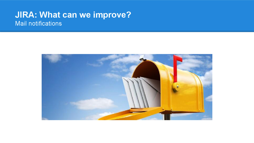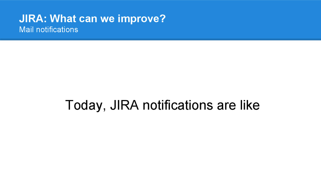 JIRA: What can we improve? Mail notifications Today, JIRA notifications