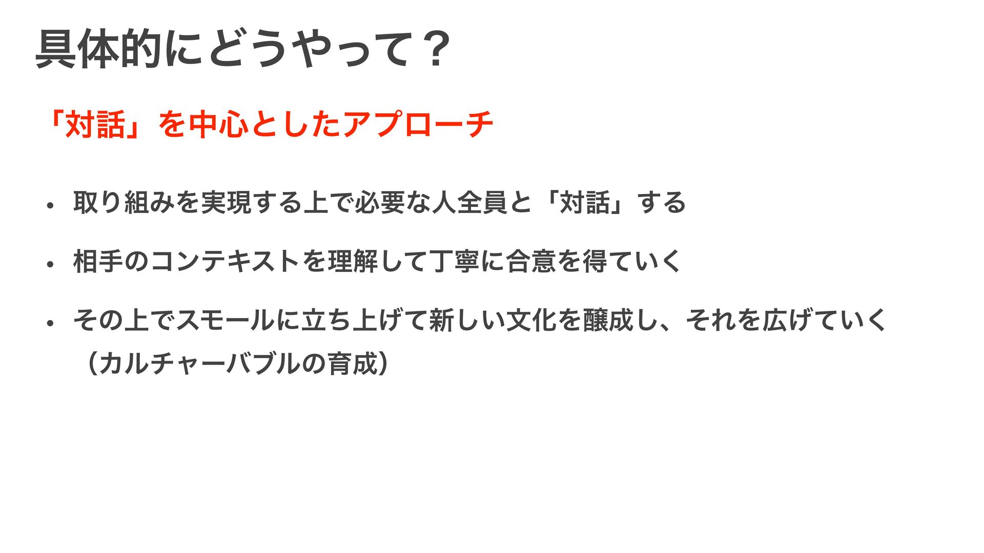 ۩ମతʹͲ͏ͬͯʁ ʮରʯΛத৺ͱͨ͠Ξϓϩʔν w औΓΈΛ࣮ݱ͢Δ্Ͱඞཁͳਓશһͱʮରʯ͢Δ w ૬खͷίϯςΩετΛཧղͯ͠ஸೡʹ߹ҙΛಘ͍ͯ͘ w ͦͷ্ͰεϞʔϧʹ্ཱͪ͛ͯ৽͍͠จԽΛৢ͠ɺͦΕΛ͍͛ͯ͘ ʢΧϧνϟʔόϒϧͷҭʣ