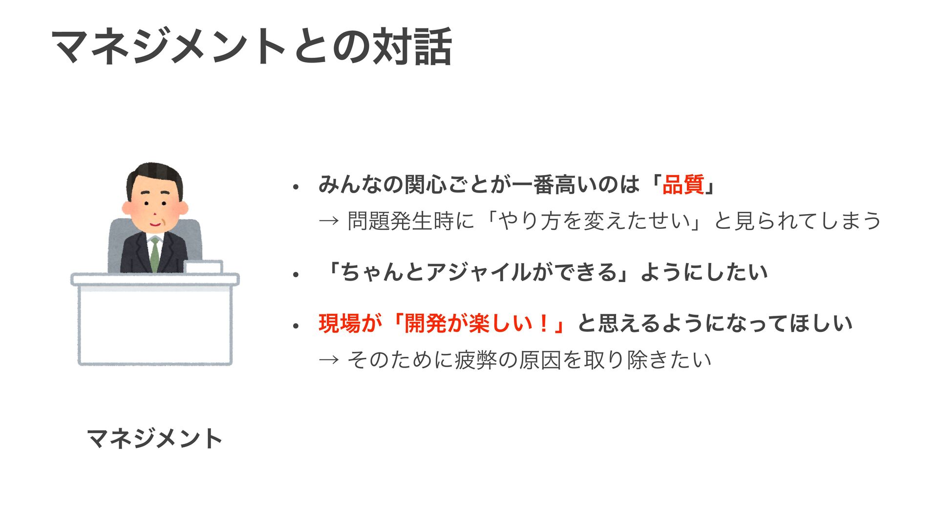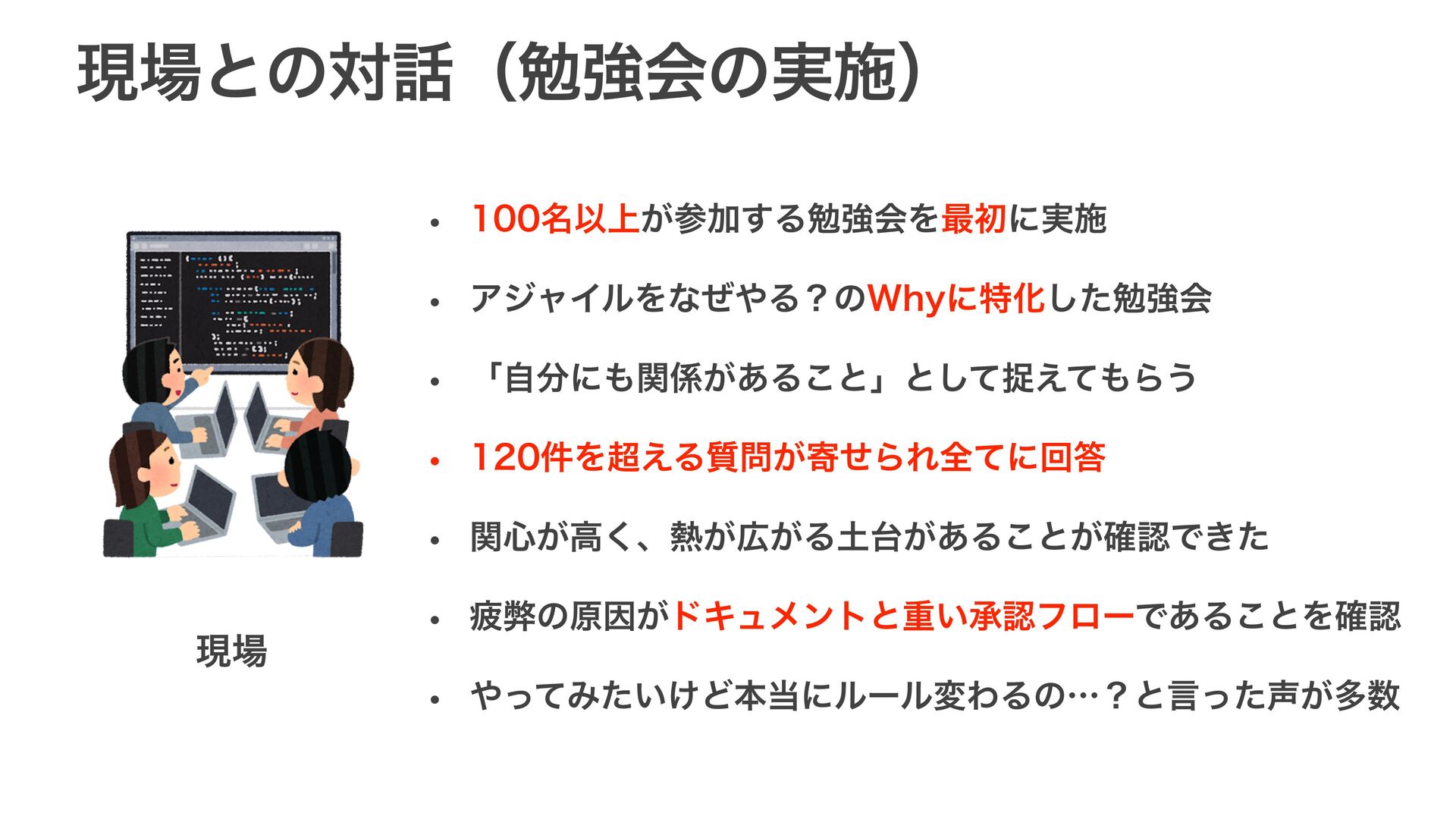 ษڧձ 10ΠϯλϏϡʔ ։ൃϓϩηεՄࢹԽ ΞδϟΠϧ։ൃ ΨΠυϥΠϯͷࡦఆ εΫϥϜษڧձ εϓϦϯτ νʔϜ࢝ಈ εϓϦϯτ ͡Ίͯͷ ϦϦʔε ผ1+Ͱͷ εΫϥϜνʔϜੜ ͰεΫϥϜνʔϜΛ্ཱͪ͛ɺ࠷ॳͷϦϦʔε·Ͱྃ ࠓͰผͷ1+ͰΞδϟΠϧΛ࠾༻͢ΔͳͲࣾͰՐ͕͕͍ͬͯΔ औΓΈͷาΈ