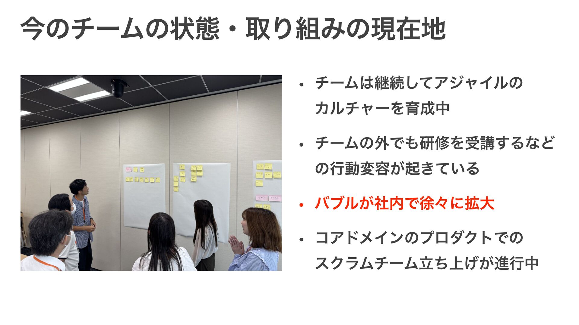 ࠓͷνʔϜͷঢ়ଶɾऔΓΈͷݱࡏ w νʔϜܧଓͯ͠ΞδϟΠϧͷ ΧϧνϟʔΛҭத w νʔϜͷ֎ͰݚमΛडߨ͢ΔͳͲ ͷߦಈม༰͕ى͖͍ͯΔ w όϒϧ͕ࣾͰঃʑʹ֦େ w