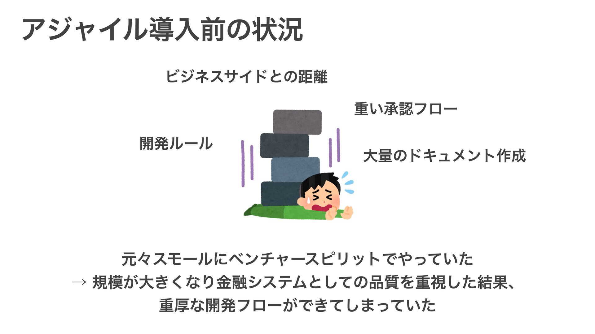 ։ൃϧʔϧ େྔͷυΩϡϝϯτ࡞ ϏδωεαΠυͱͷڑ ॏ͍ঝೝϑϩʔ ݩʑεϞʔϧʹϕϯνϟʔεϐϦοτͰ͍ͬͯͨ ˠن͕େ͖͘ͳΓۚ༥γεςϜͱͯ͠ͷ࣭Λॏࢹͨ݁͠Ռɺ ॏްͳ։ൃϑϩʔ͕Ͱ͖ͯ͠·͍ͬͯͨ ΞδϟΠϧಋೖલͷঢ়گ