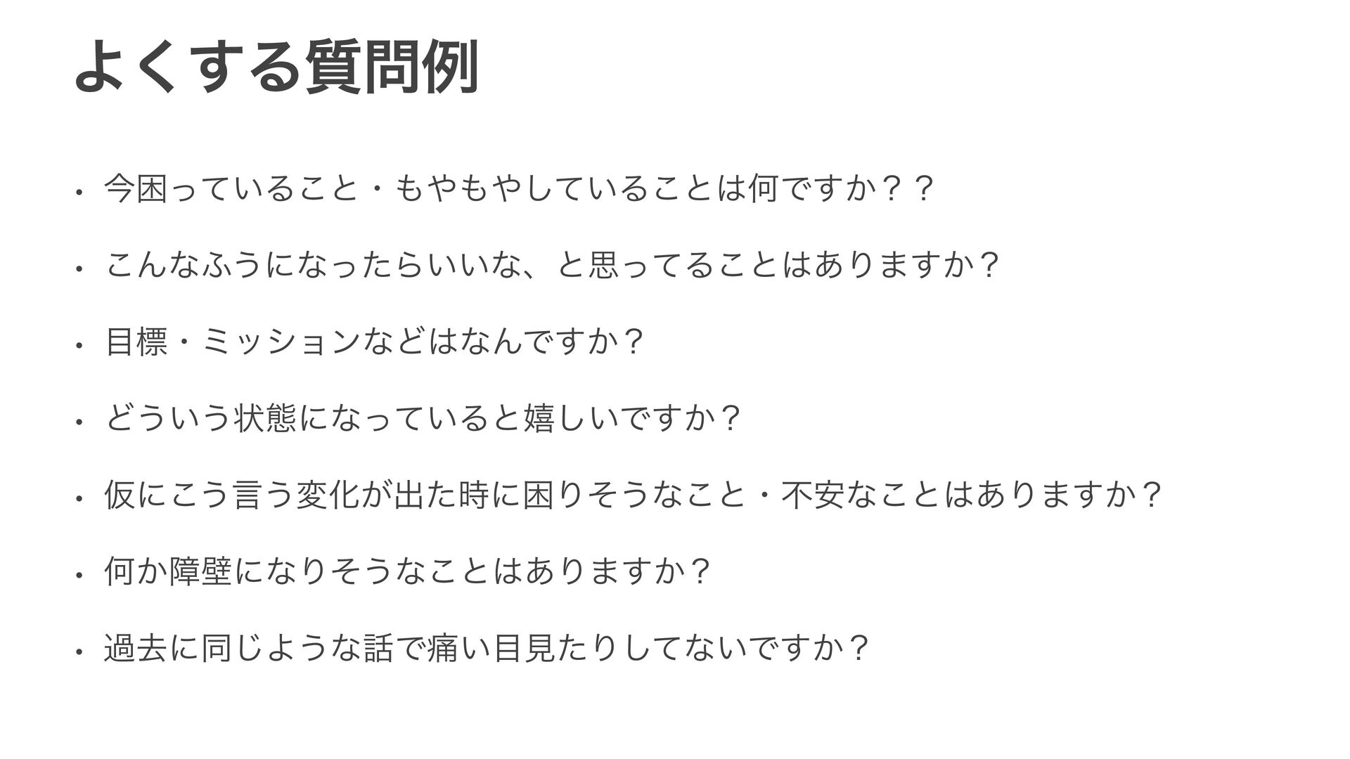Α͘͢Δ࣭ྫ w ࠓࠔ͍ͬͯΔ͜ͱɾ͍ͯ͠Δ͜ͱԿͰ͔͢ʁʁ w ͜Μͳ;͏ʹͳͬͨΒ͍͍ͳɺͱࢥͬͯΔ͜ͱ͋Γ·͔͢ʁ w ඪɾϛογϣϯͳͲͳΜͰ͔͢ʁ w Ͳ͏͍͏ঢ়ଶʹͳ͍ͬͯΔͱخ͍͠Ͱ͔͢ʁ w