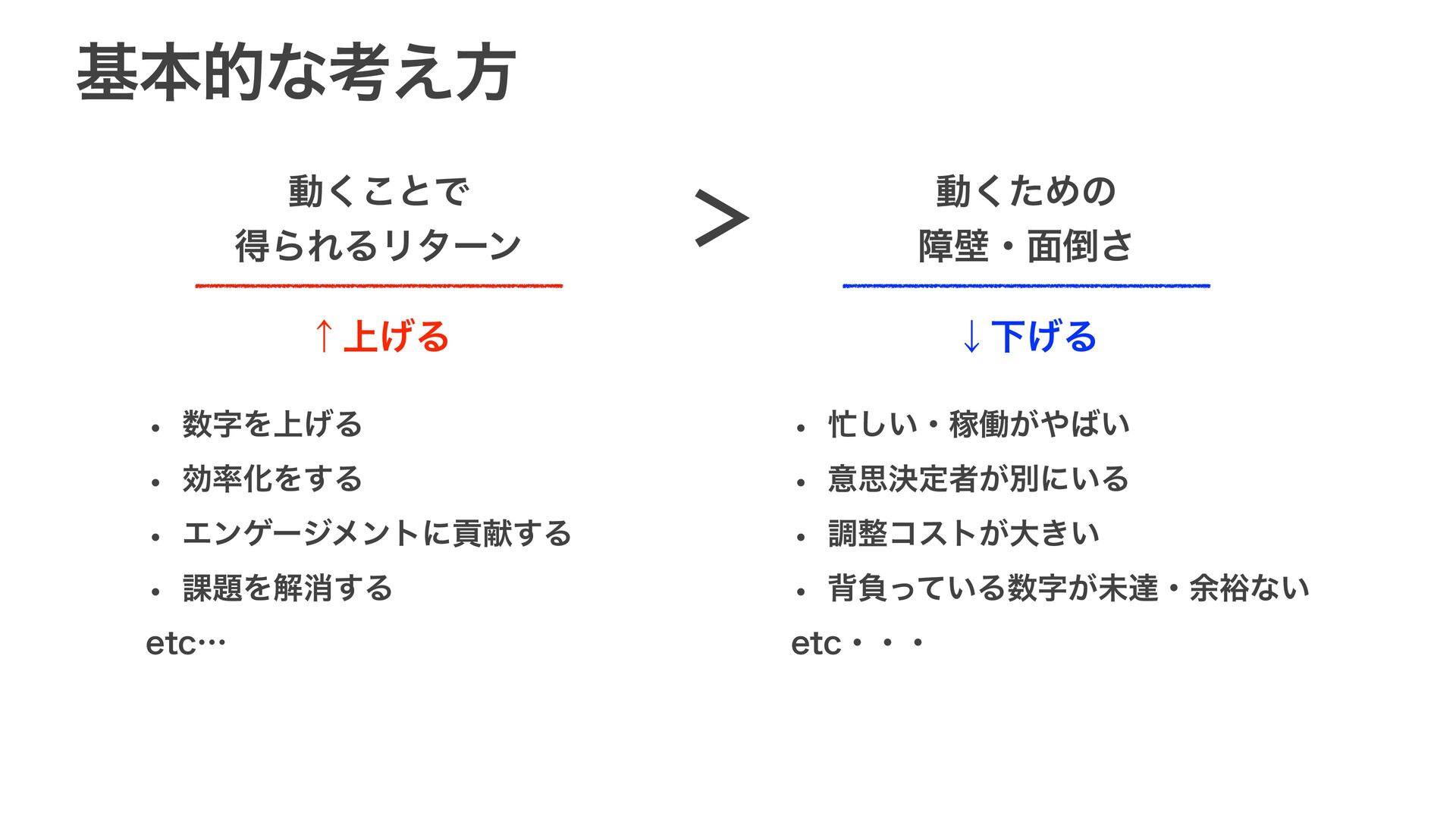 w ޮԽΛ͢Δ w Τϯήʔδϝϯτʹߩݙ͢Δ w ՝Λղফ͢Δ FUDʜ w ͍͠ɾՔಇ͕͍ w ҙࢥܾఆऀ͕ผʹ͍Δ w ௐίετ͕େ͖͍ w എෛ͍ͬͯΔࣈ͕ະୡɾ༨༟ͳ͍ FUDɾɾɾ