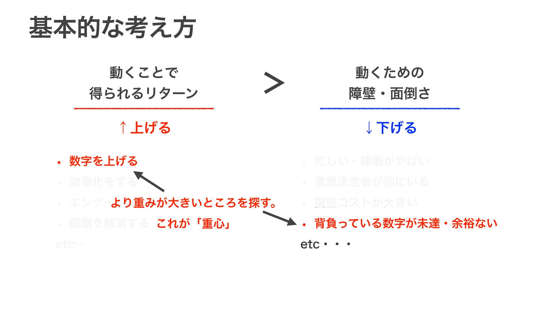 w ޮԽΛ͢Δ w Τϯήʔδϝϯτʹߩݙ͢Δ w ՝Λղফ͢Δ FUDʜ w ͍͠ɾՔಇ͕͍ w ҙࢥܾఆऀ͕ผʹ͍Δ w ௐίετ͕େ͖͍ w എෛ͍ͬͯΔࣈ͕ະୡɾ༨༟ͳ͍ FUDɾɾɾ ΑΓॏΈ͕େ͖͍ͱ͜ΖΛ୳͢ɻ ͜Ε͕ʮॏ৺ʯ