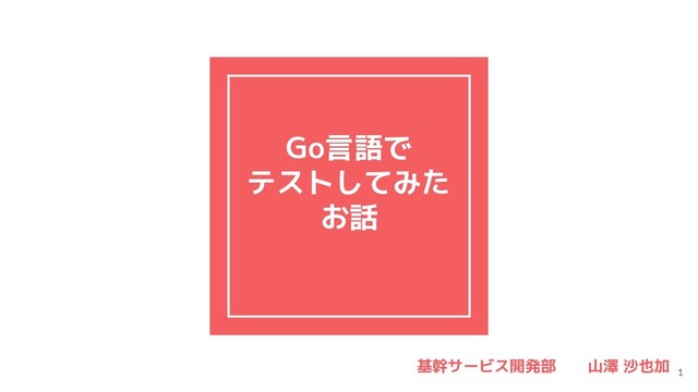 Go言語で テストしてみた お話 基幹サービス開発部 山澤 沙也加 1