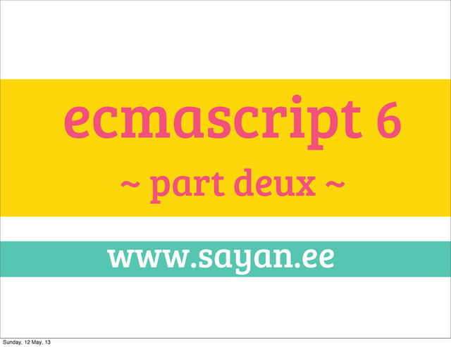 "Dagger"], rooms = ["Kitchen", "Ballroom"]; array comprehension es6 shorthand es5 var temperature = [0, 37, 100]; function degToKelvin(deg) { return deg + 273; } temperature.map(degToKelvin); var temperature = [0, 37, 100]; [t + 273 for (t of temperature)]; 3-loops 1-loop [(console.log(s + " with a " + w + " in the " + r)) for (s of suspects) for (w of weapons) for (r of rooms)]; Sunday, 12 May, 13