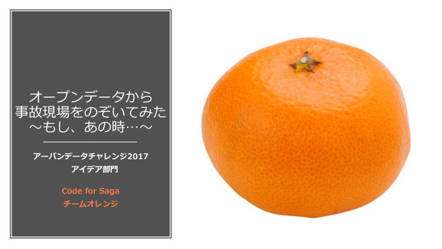 オープンデータから 事故現場をのぞいてみた ~もし、あの時…~ アーバンデータチャレンジ2017 アイデア部門 Code for Saga チームオレンジ