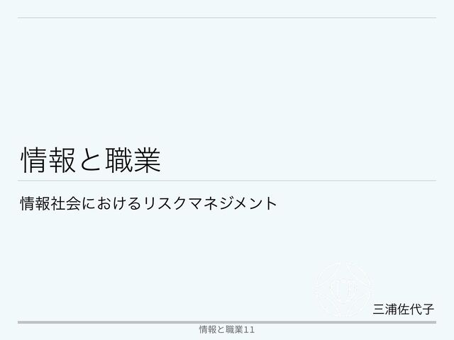 ใͱ৬ۀ ใࣾձʹ͓͚ΔϦεΫϚωδϝϯτ 情報と職業11 ࡾӜࠤࢠ