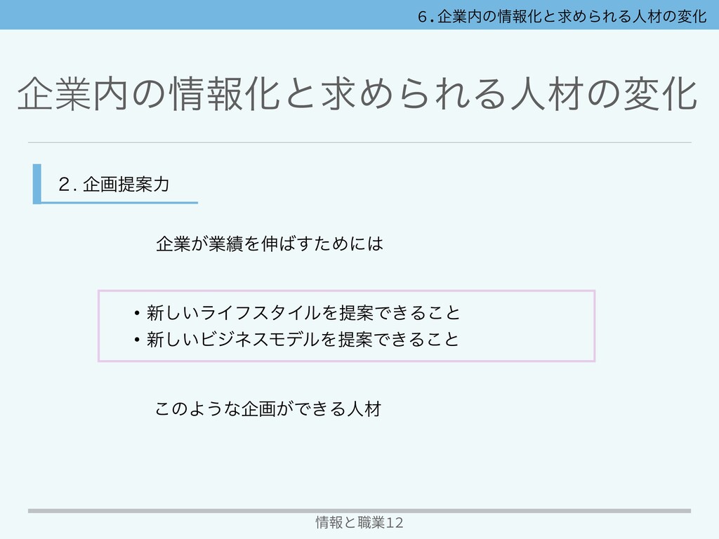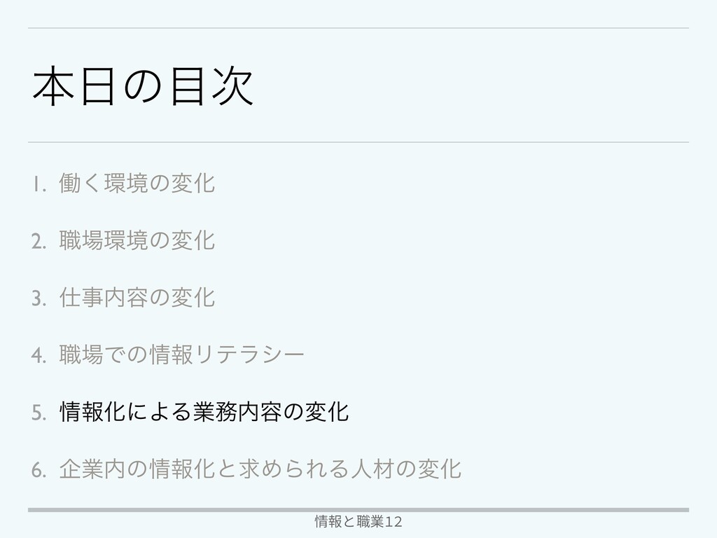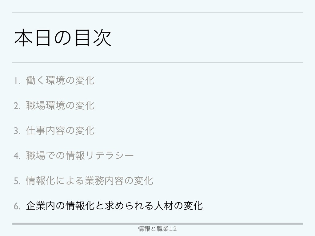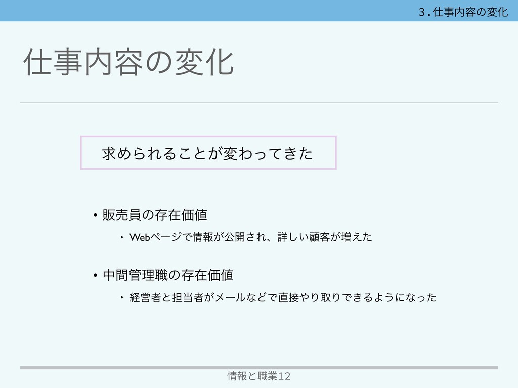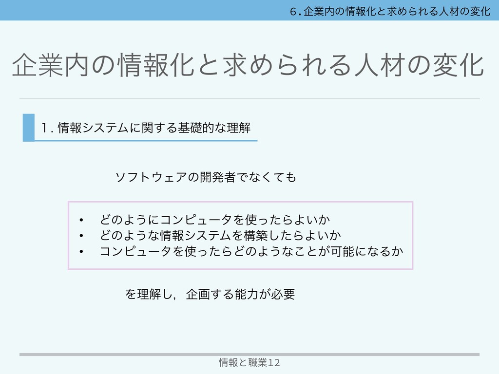 ใԽʹΑΔۀ༰ͷมԽ 6. اۀͷใԽͱٻΊΒΕΔਓࡐͷมԽ 情報と職業12