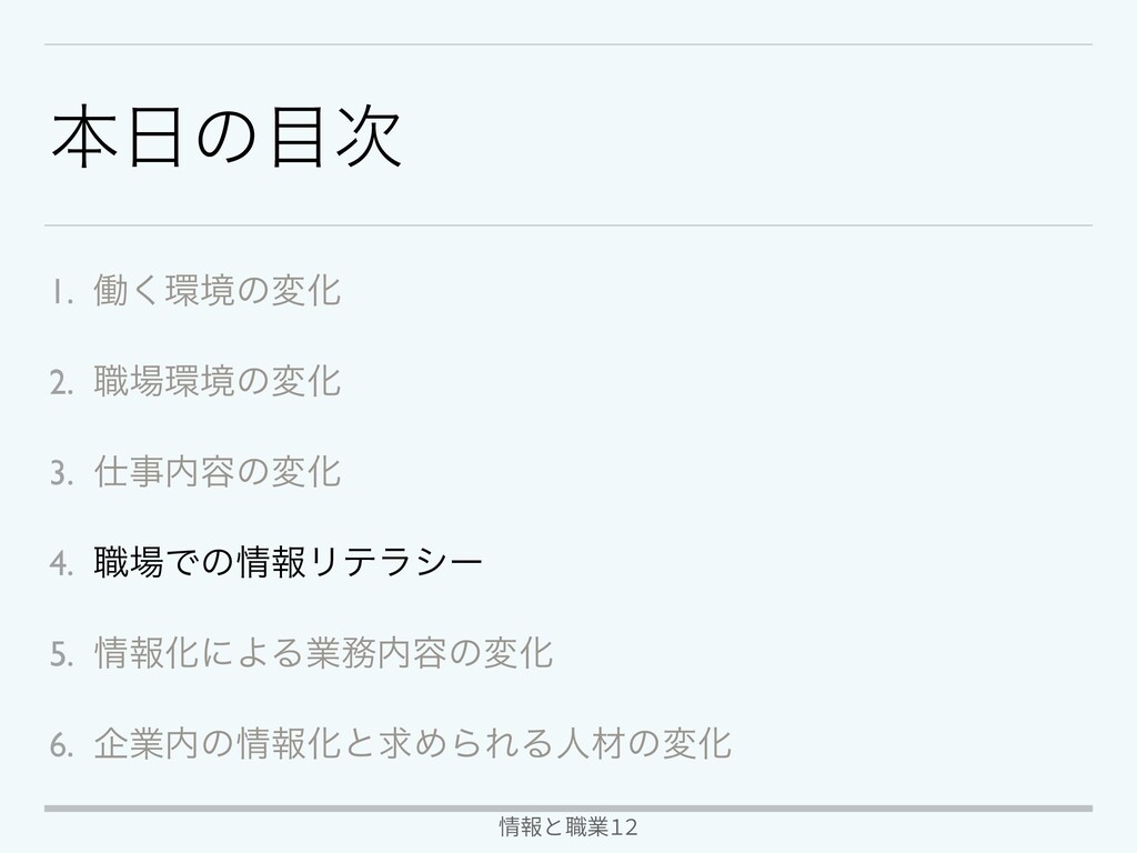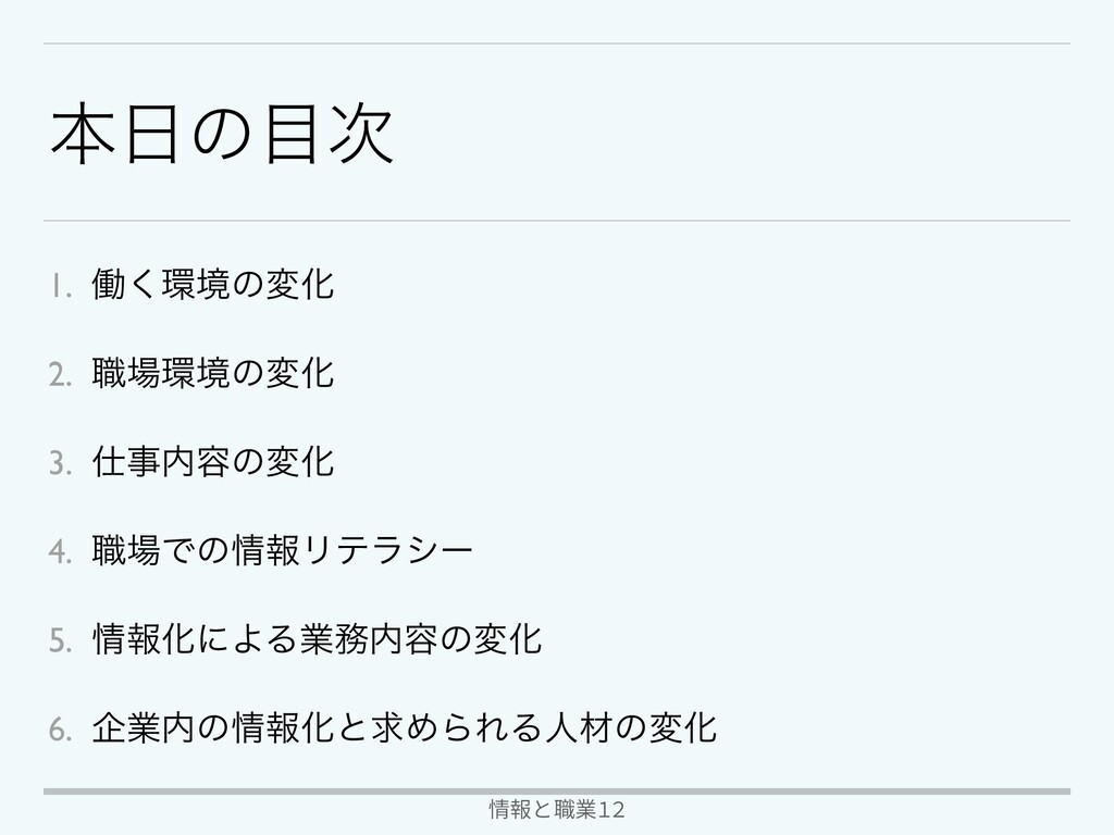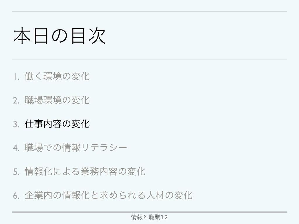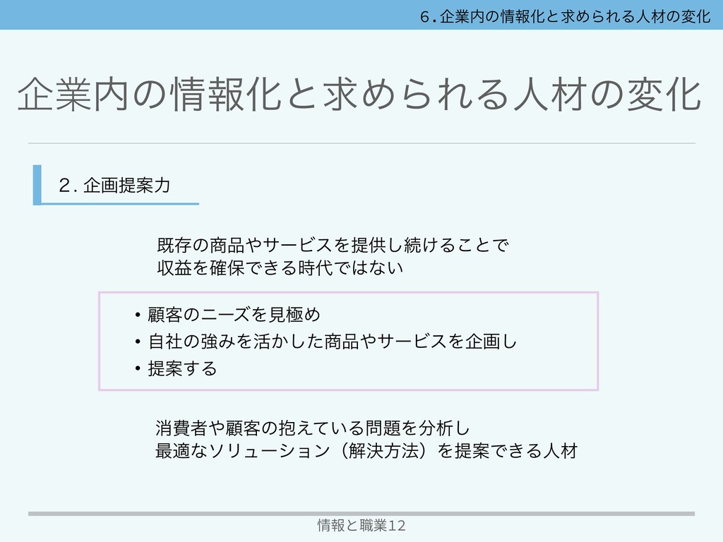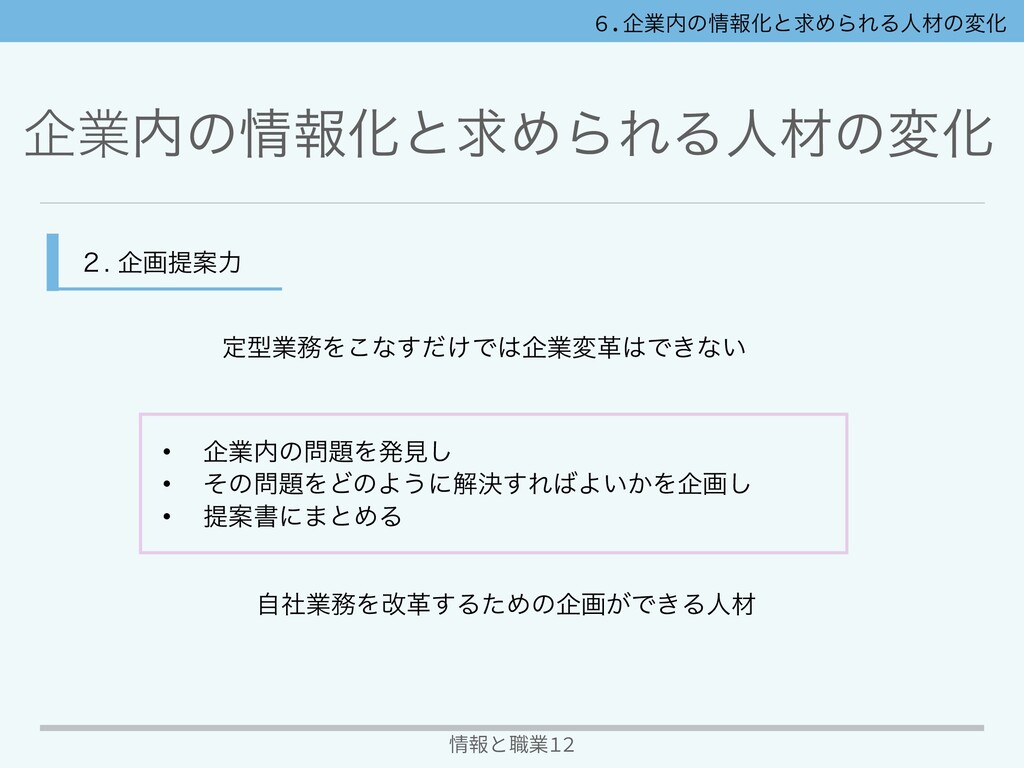 ใԽʹΑΔۀ༰ͷมԽ 6. اۀͷใԽͱٻΊΒΕΔਓࡐͷมԽ 情報と職業12