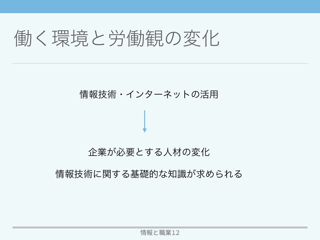 ಇ͘ڥͱ࿑ಇ؍ͷมԽ 情報と職業12 اۀ͕ඞཁͱ͢ΔਓࡐͷมԽ ใٕज़ʹؔ͢Δجૅతͳ͕ࣝٻΊΒΕΔ ใٕज़ɾΠϯλʔωοτͷ׆༻
