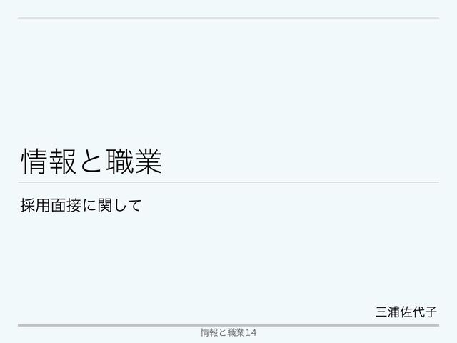 ใͱ৬ۀ ࠾༻໘ʹؔͯ͠ 情報と職業14 ࡾӜࠤࢠ