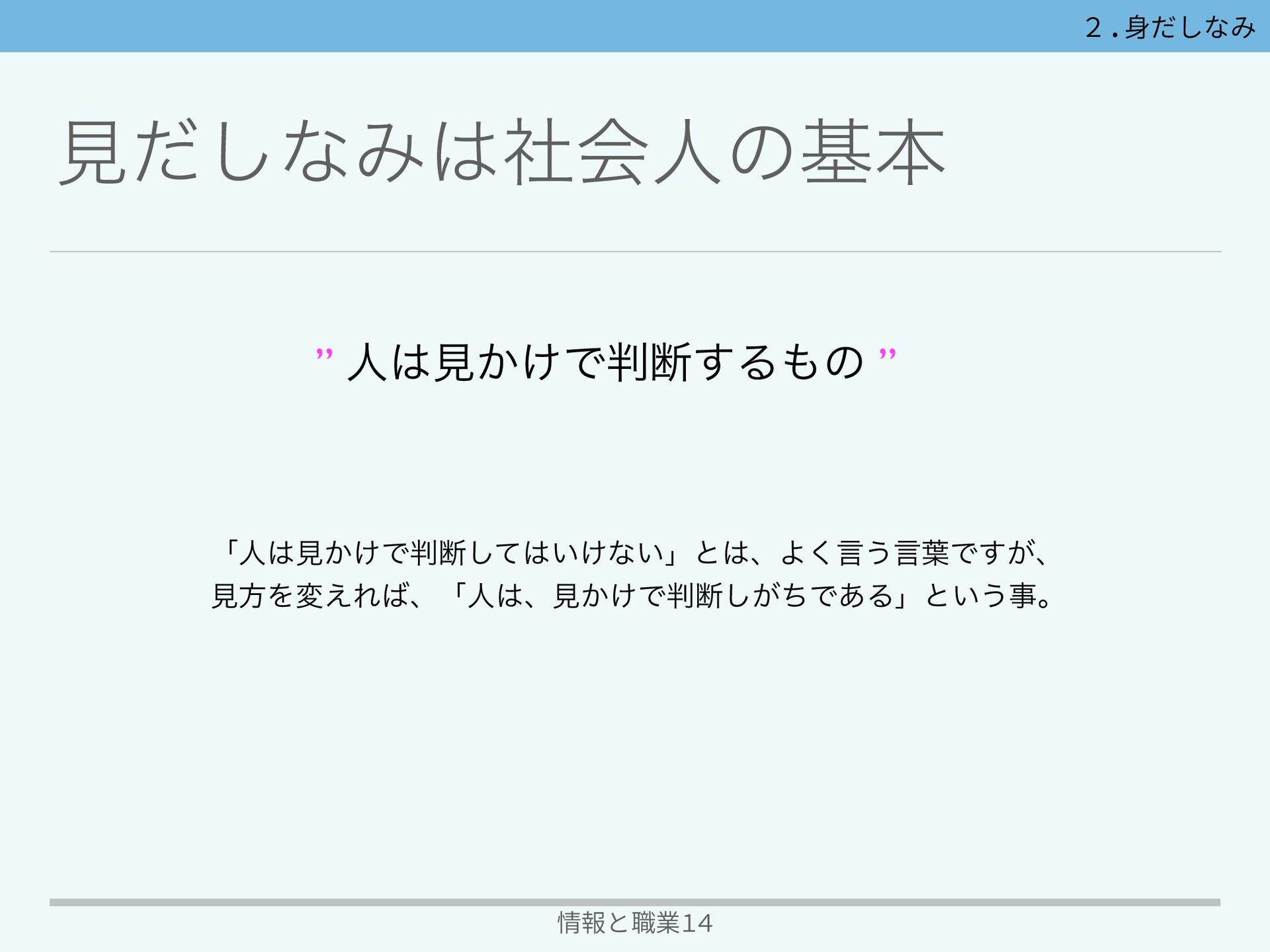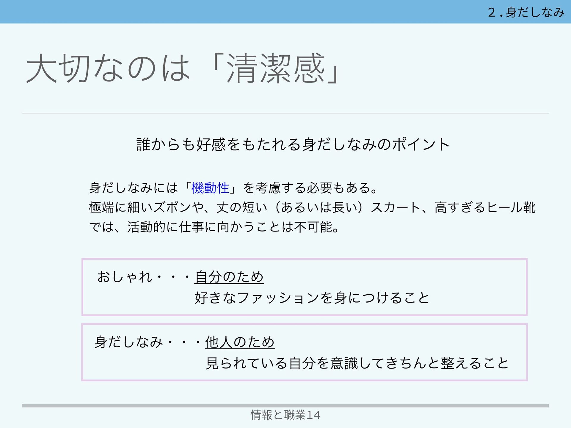 େͳͷʮਗ਼ܿײʯ 情報と職業14 2.⾝だしなみ