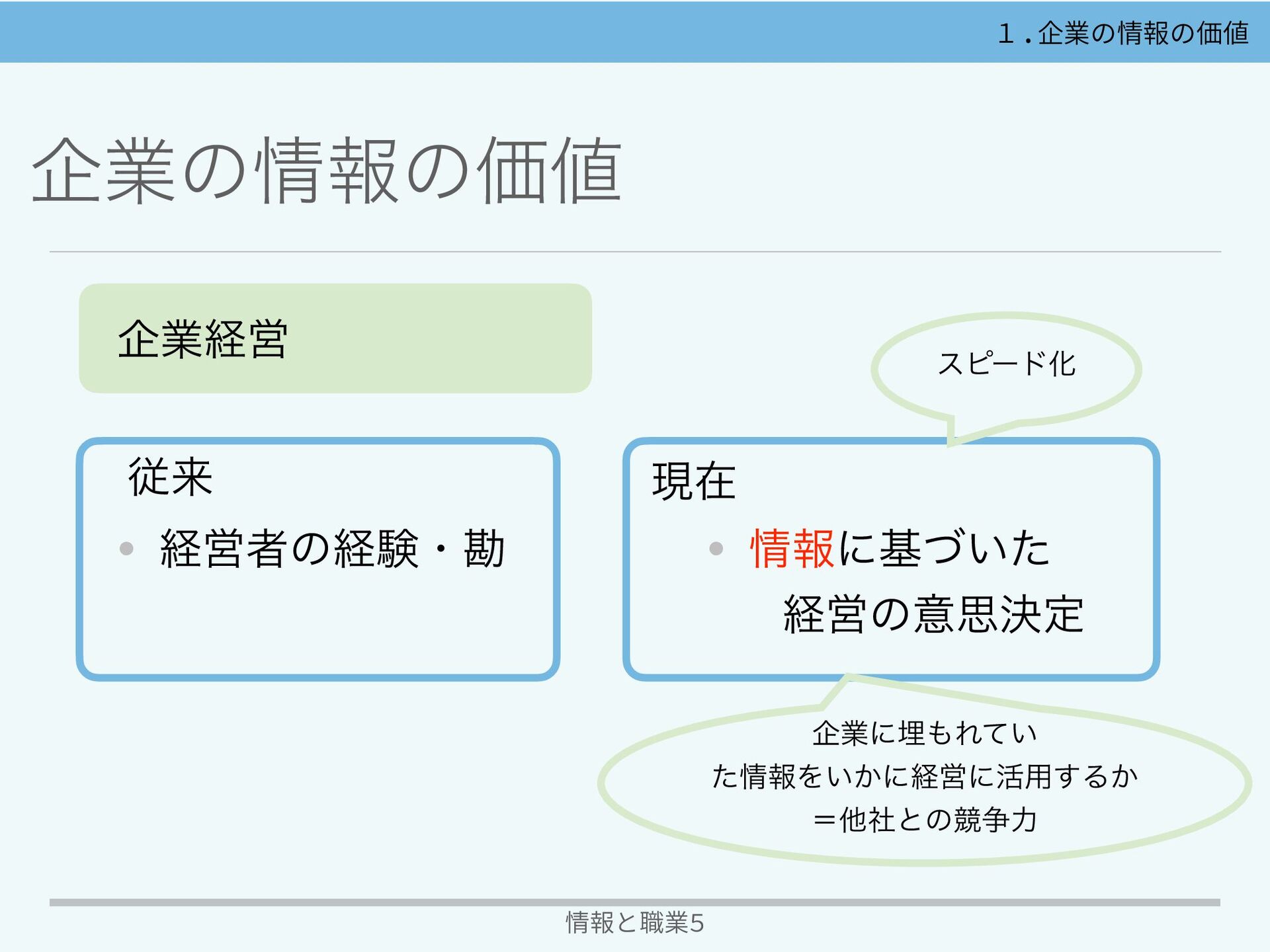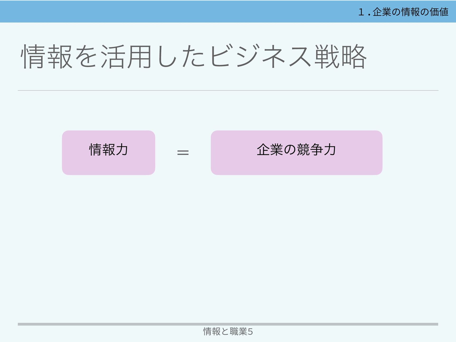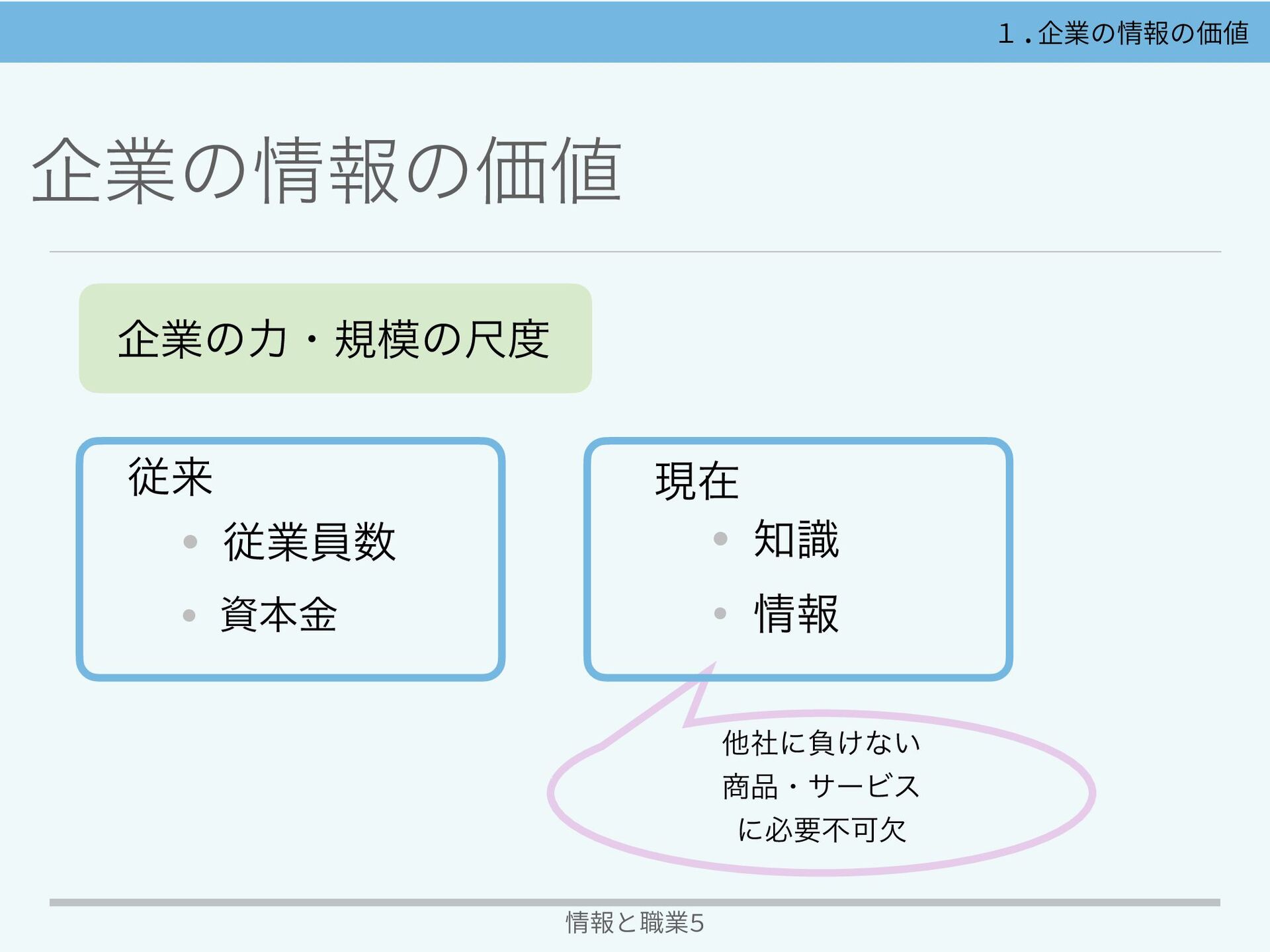 情報と職業5 ใྗ اۀͷڝ૪ྗ ใΛ׆༻ͨ͠Ϗδωεઓུ ʹ 1.企業の情報の価値