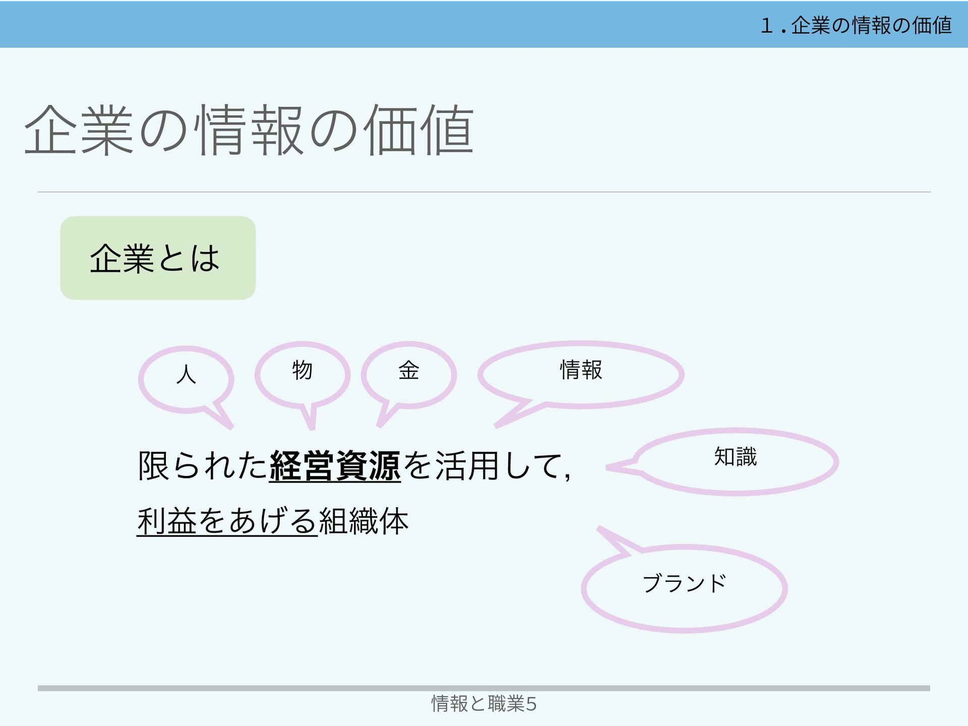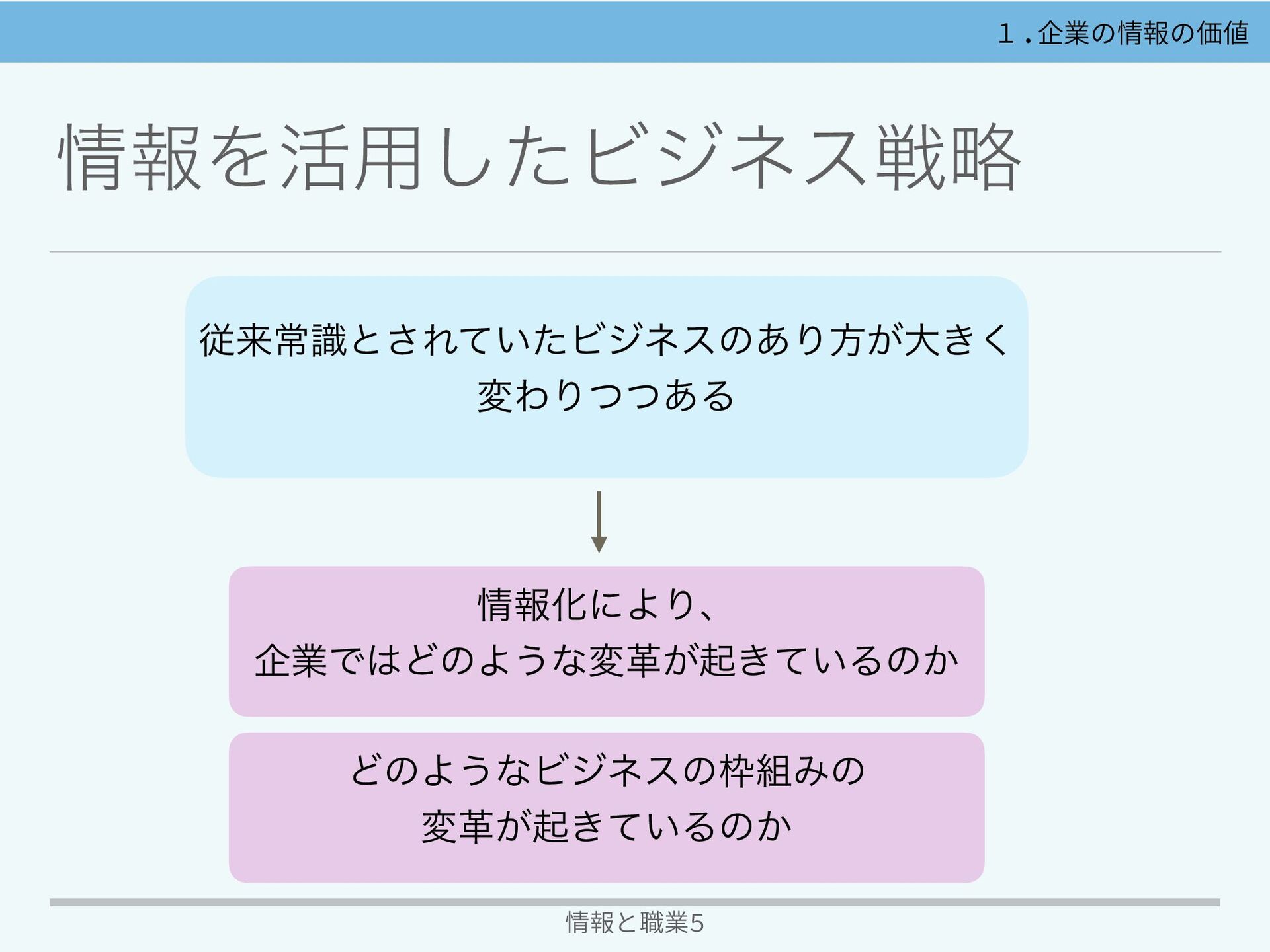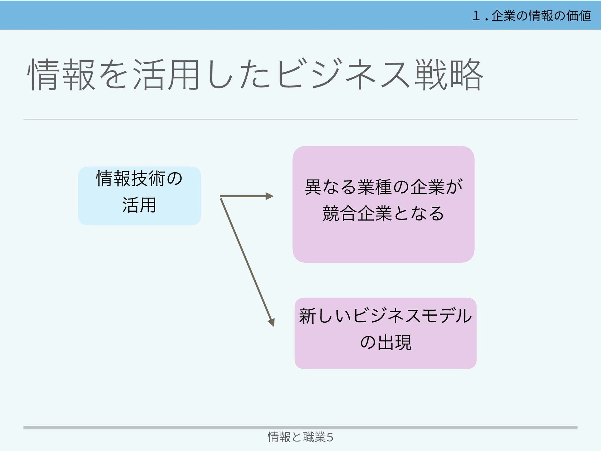 情報と職業5 ใྗ اۀͷڝ૪ྗ ใΛ׆༻ͨ͠Ϗδωεઓུ ʹ 1.企業の情報の価値
