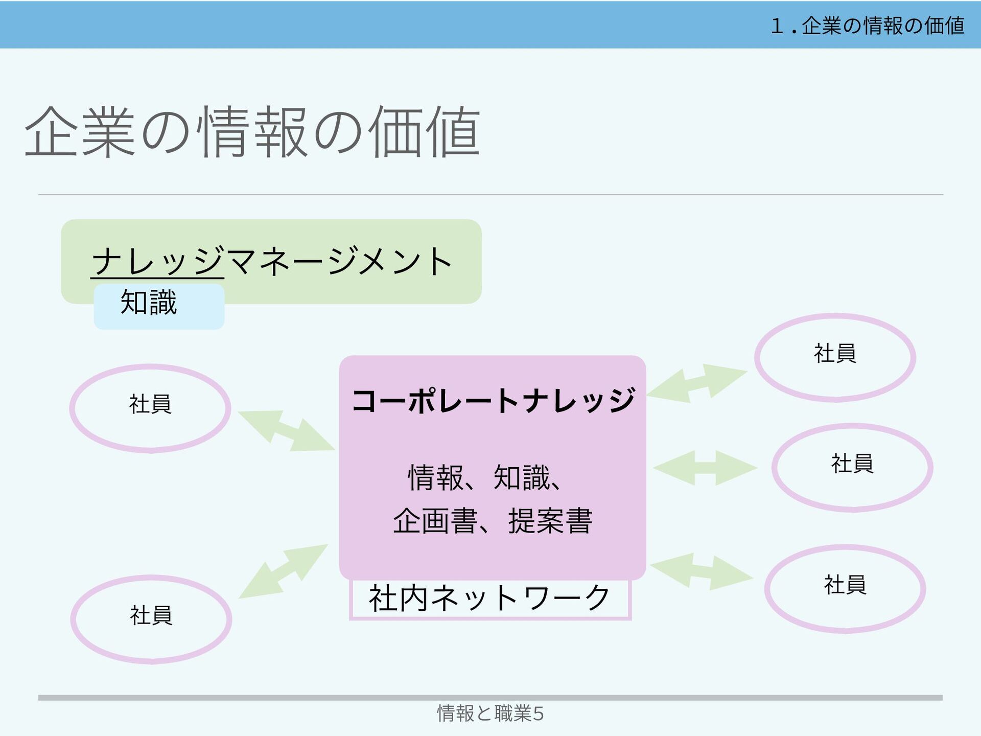 情報と職業5 φϨοδϚωʔδϝϯτ ࣾһ 1.企業の情報の価値 اۀͷใͷՁ ίʔϙϨʔτφϨοδ ใɺࣝɺ اըॻɺఏҊॻ ࣾωοτϫʔΫ ࣾһ