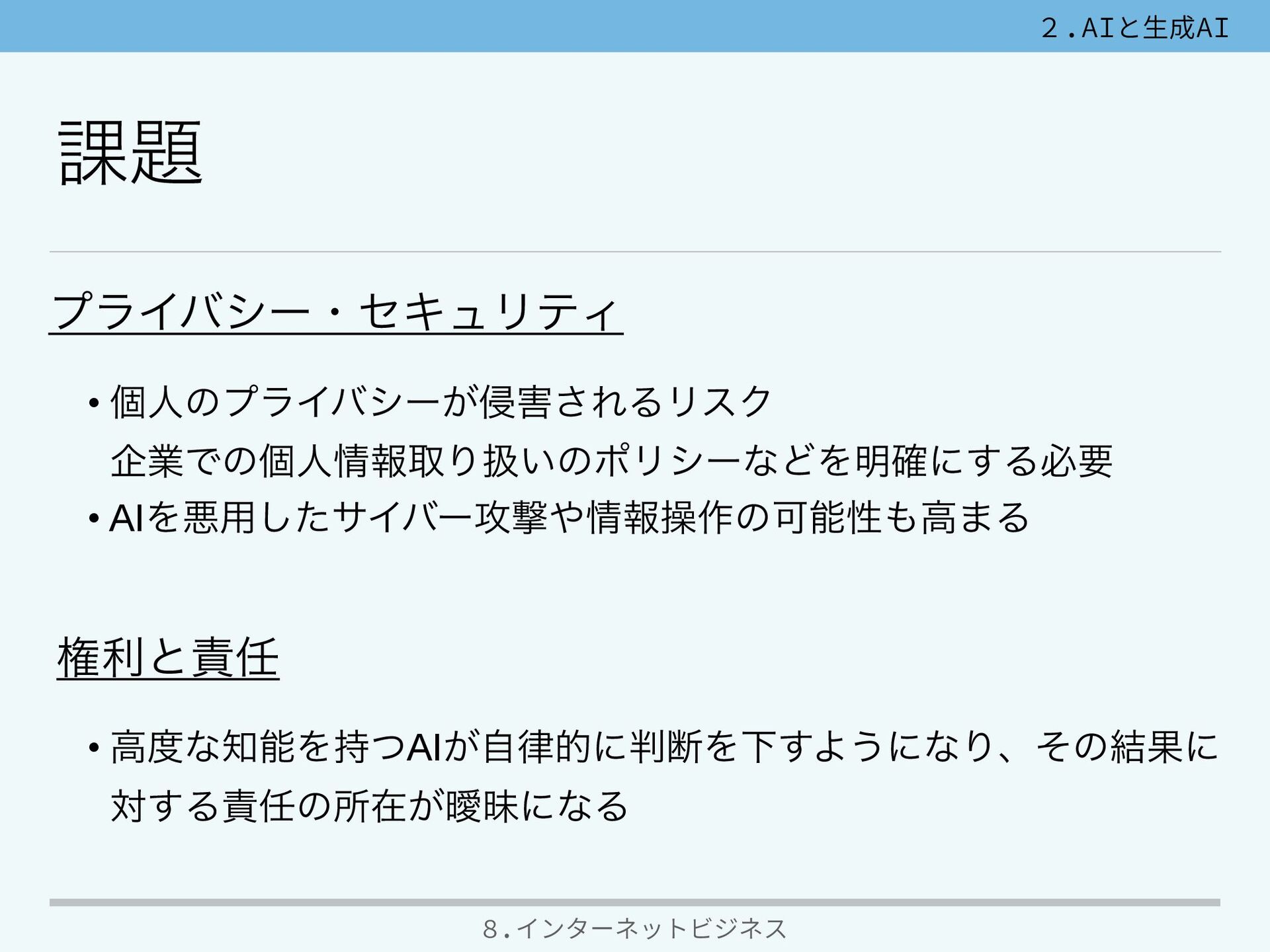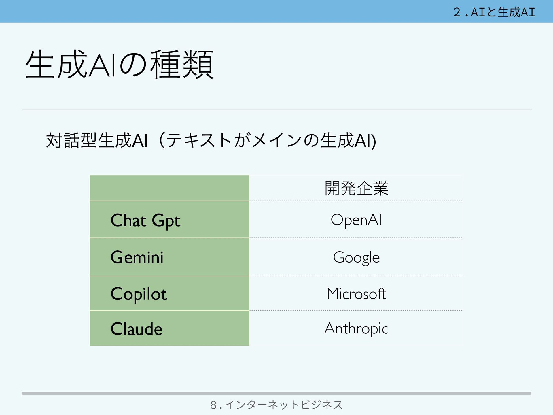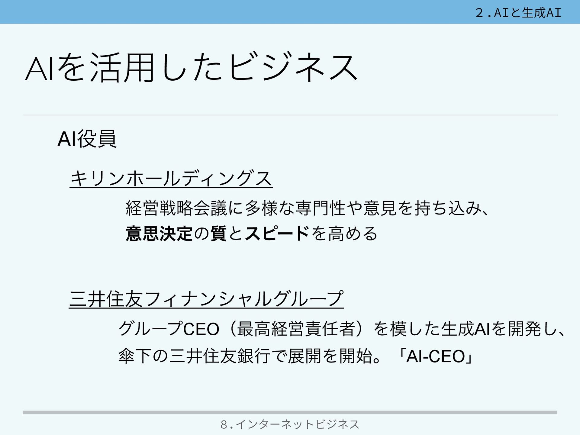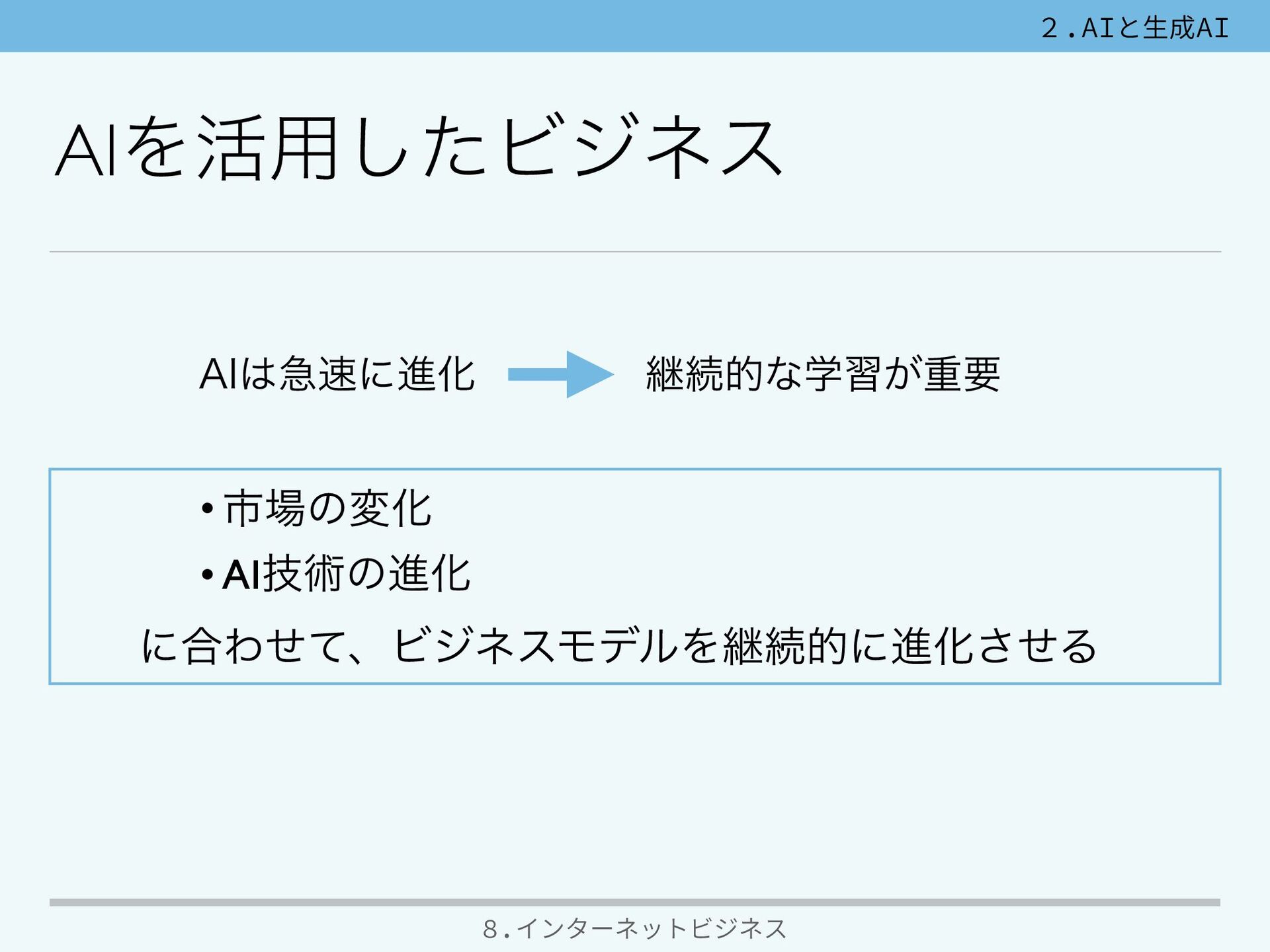 C ʢGovernment to Customerʣ ɾ࣏ࣗମͱফඅऀؒͷऔҾ ΠϯλʔωοτΛͬͨ֬ఆਃࠂɺॅຽථύε ϙʔτͷਃͳͲ B to E ʢ Business to Employeeʣ اۀͱैۀһؒͷऔҾ ैۀһʹಛผʹαʔϏεΛల։ͨ͠Γɺ௨ ৗΑΓՁ֨Λ҆ͯ͘͠ఏڙ EC 1.インターネットによる新しいビジネスモデル ECαΠτͷछྨ 8.インターネットビジネス