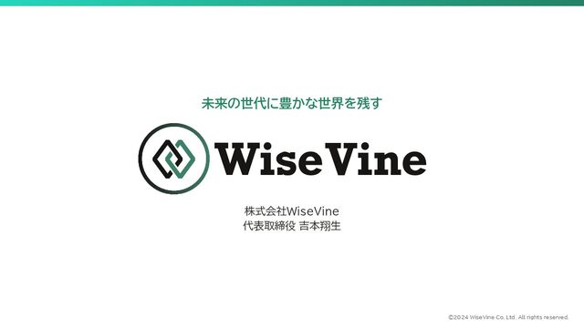 ©2024 WiseVine Co. Ltd. All rights reserved. 未来の世代に豊かな世界を残す 株式会社WiseVine 代表取締役