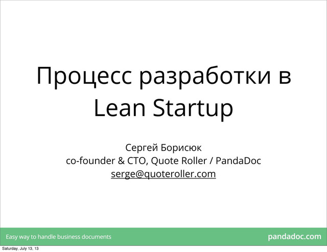 N пользователей • Мы не делаем фичу, пока сами не верим, что она нужна • Мы не делаем кастомизаций приложения • Мы склонны умышленно упрощать все, что нам приходит и сначала тестировать Saturday, July 13, 13