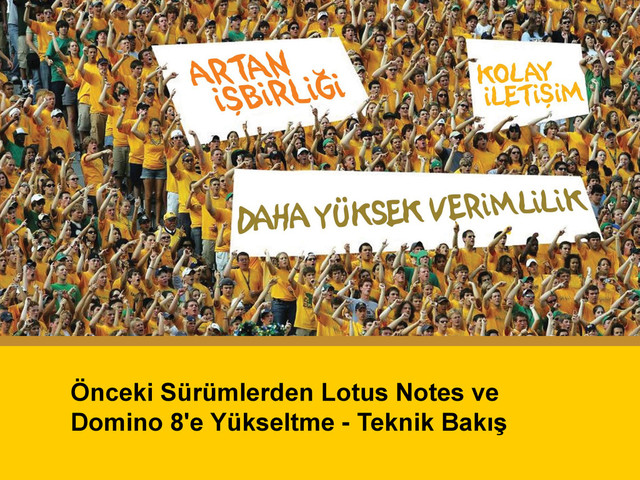 – Checklist’ler, Technote’lar, Planlar, Görev Dağılımları... • Platform değiştiriyorsanız (32 bit – 64 bit, linux – windows), versiyon geçişiyle aynı anda yapılması tavsiye edilmez! • Template uyarlamalarına (Domino Directory ve Mail veritabanları) dikkat! – Tüm uyarlamaların yedeği alınmalı, upgrade sonrasında tekrar uygulanmalı.