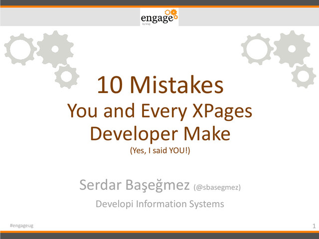 be displayed. • If you can decide before loading page… • URL parameter, user role, data source, etc. • Static «loaded» can be used… • Want to switch during run-time? • According to an input, based on a dynamic value, etc. • Dynamic «rendered» values preferred mostly. • BUT, as shown before, this will evaluate the CC! • All ${…} bindings and pageLoad events 42 #engageug