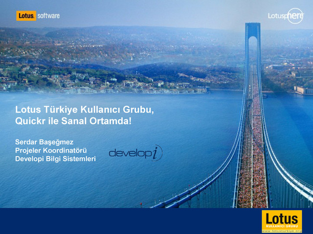 2008’de kuruldu. • • Amaçlarımız: – Lotus Profesyonellerini bir araya getirmek, – Üyelerimize sosyal ağ platformu oluşturmak, – Lotus ürünleri konusunda (Türkçe) bilgi paylaşımını arttırmak, – Lotus yazılımlarına fayda yaratarak Lotus uzmanlığına değer katmak. • • Web sitesi için platform seçimi – Hızlı geliştirme, kolay kullanım, Lotus'a yaraşır bir ön yüz – Lotus Quickr + Lotus Connections + Lotus Sametime + ... •