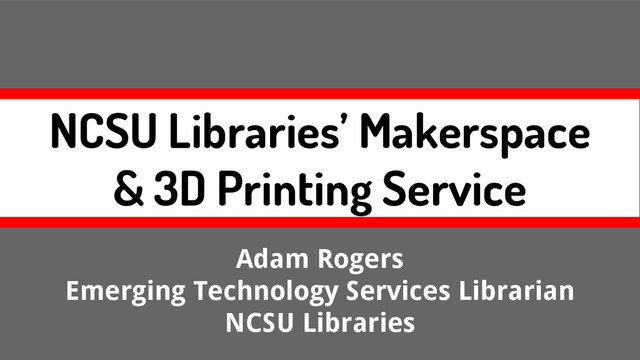 NCSU Libraries’ Makerspace & 3D Printing Service Adam Rogers Emerging