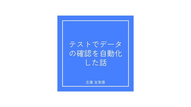 テストでデータ の確認を自動化 した話 志葉 友梨香