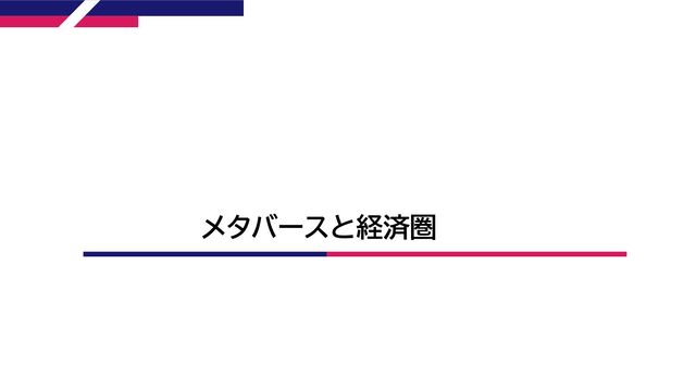 メタバース WEB3.0 • いろんな人が参加している • 持続可能で、永遠に続く • 違う自分になれる • 仕事ができる