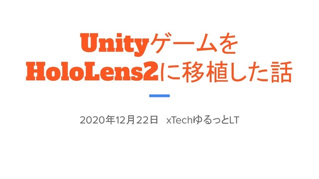 Unityゲームを HoloLens2に移植した話 2020年12月22日 xTechゆるっとLT