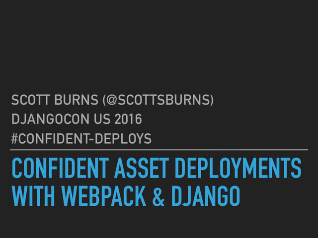 CONFIDENT ASSET DEPLOYMENTS WITH WEBPACK & DJANGO SCOTT BURNS (@SCOTTSBURNS)