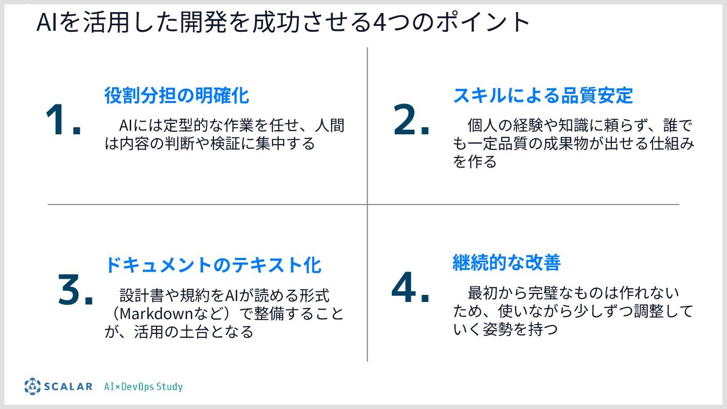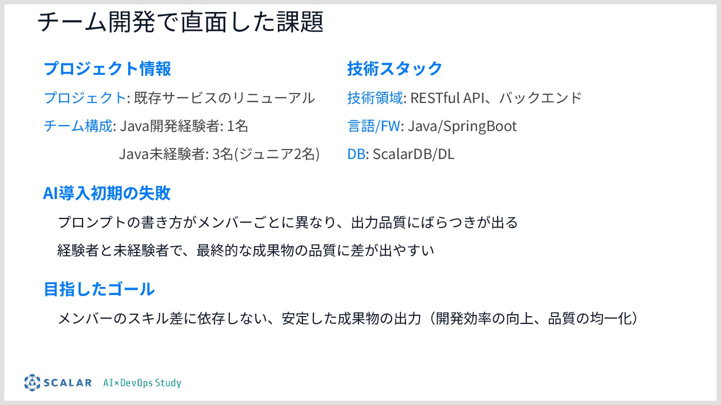株式会社ScalarではAIを使ったチーム開発を進めており、参画しているメンバーや協力会社の方から、具体的なAI駆動開発を実施する方法、その中で生まれたマイクロサービスアーキテクチャを使用したAI駆動開発の事例や実際に使えるエージェントについてお話頂き、参加者の皆様と知識の共有や交換を目的としています。