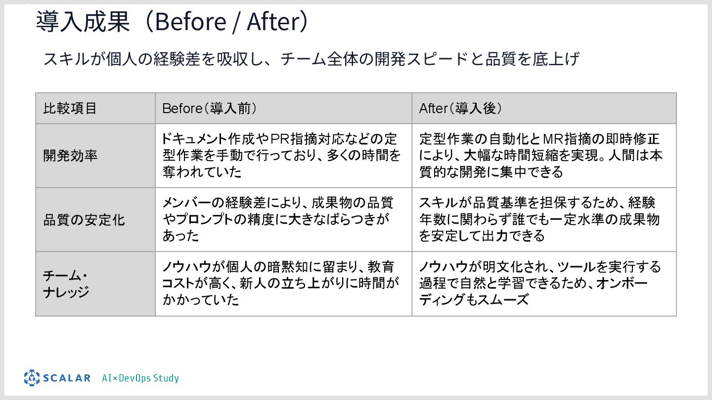 Claude CodeのSkills機能を活用し、APIの詳細設計・実装・テスト・レビュー対応・PRレビュー指摘の反映といった開発フロー全体を標準化。作業者のスキル差を吸収し、ジュニアメンバーでも一定品質を担保しながら開発スピードを向上させることができました。 当日は実際にテンプレートを使ったAPI開発のデモを交えながら、チーム開発におけるAI活用のポイントをお伝えします。