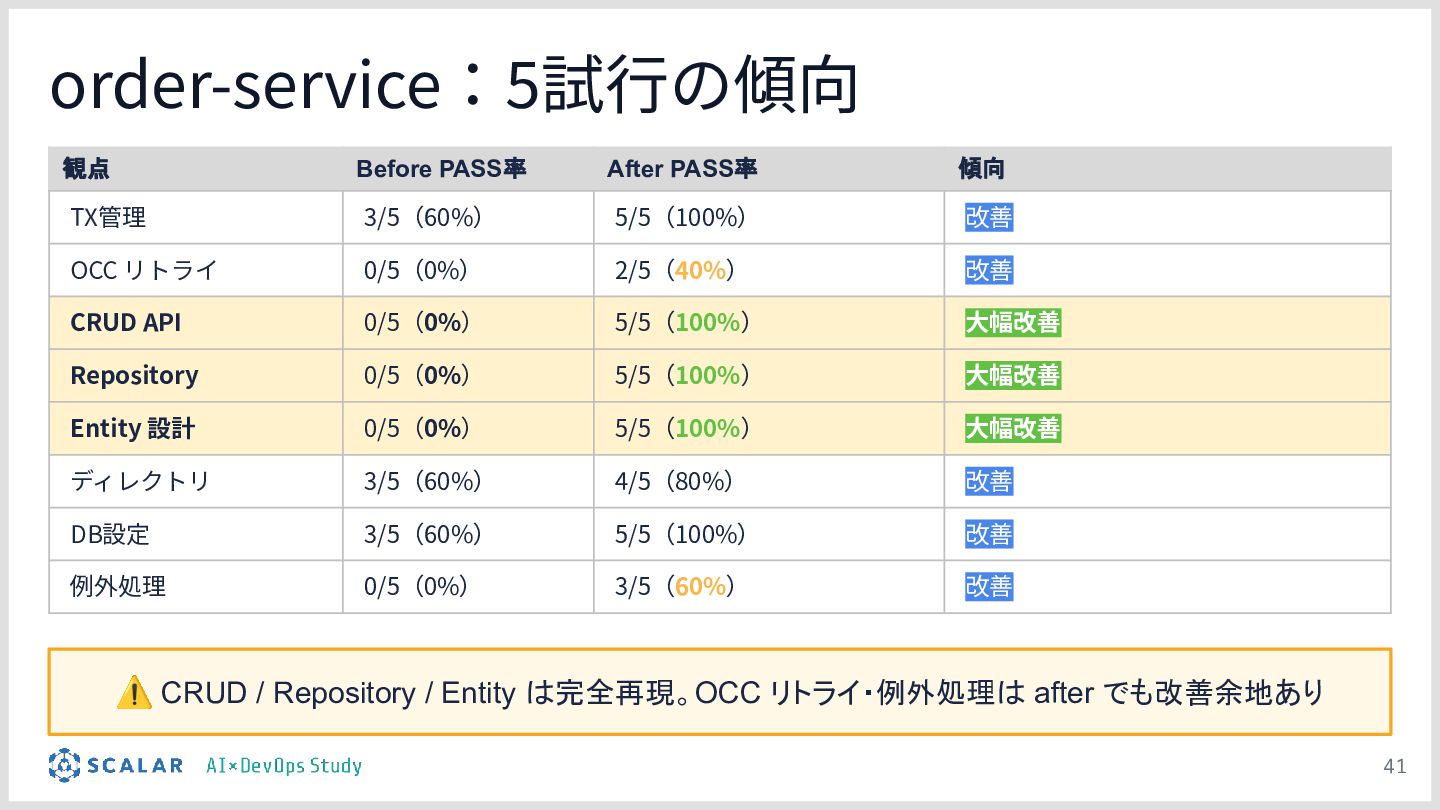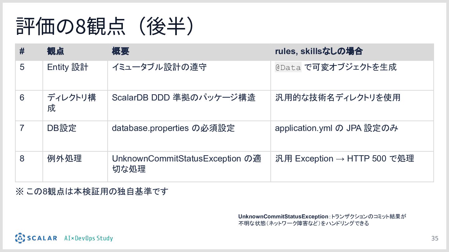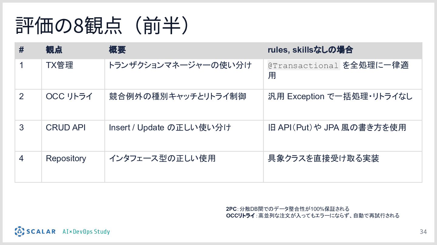 検証のポイント:株式会社ScalarやEvery社のツールを活用しつつ、OCCリトライロジック、分散トランザクションのシーケンス、独自の例外処理規約などが、設定の有無でどれだけ正確に実装されるかを実演します。
