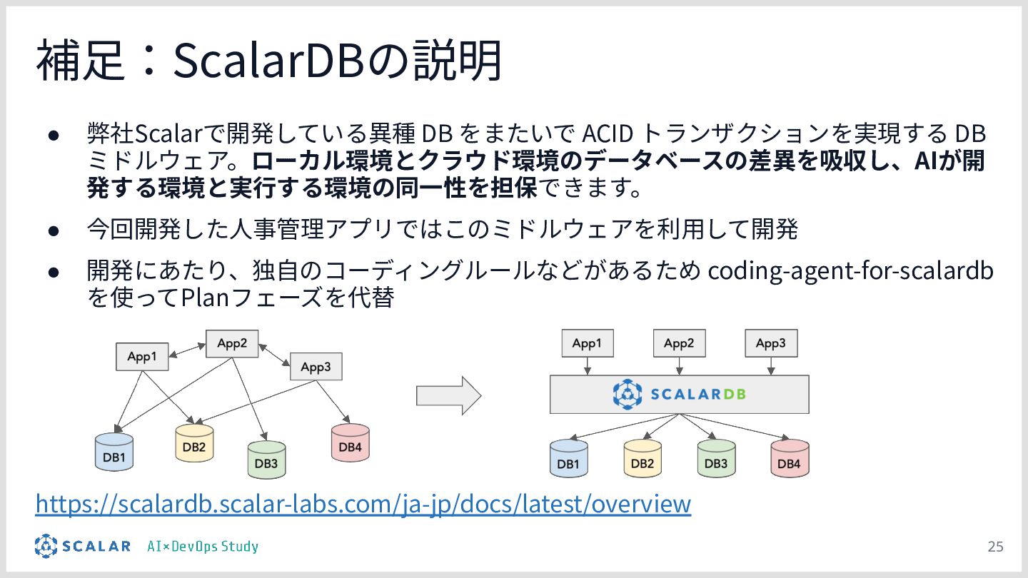 株式会社ScalarではAIを使ったチーム開発を進めており、参画しているメンバーや協力会社の方から、具体的なAI駆動開発を実施する方法、その中で生まれたマイクロサービスアーキテクチャを使用したAI駆動開発の事例や実際に使えるエージェントについてお話頂き、参加者の皆様と知識の共有や交換を目的としています。