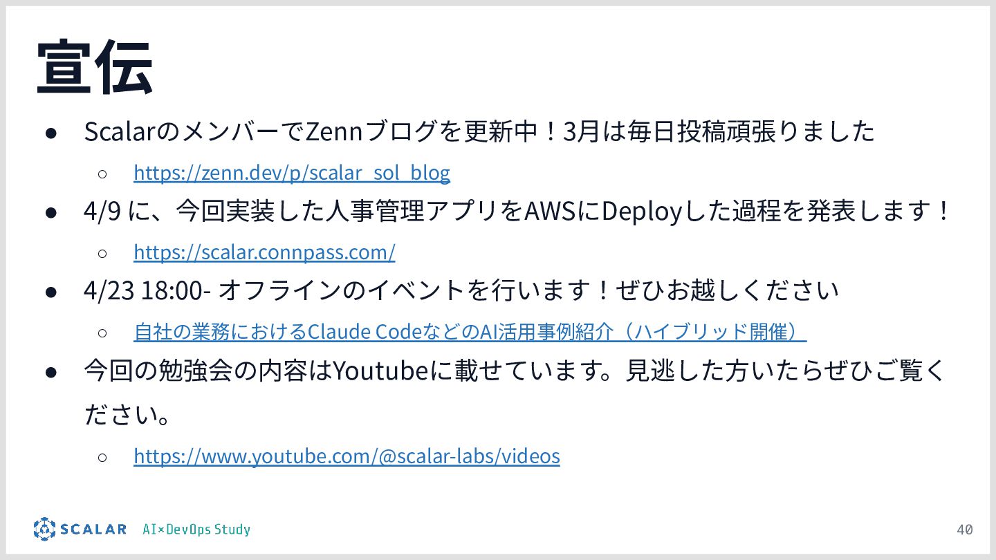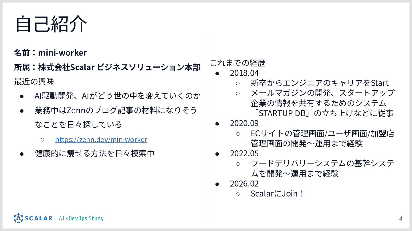 2026年4月2日に開催した「AI×DevOps Study」第10回の勉強会資料です。