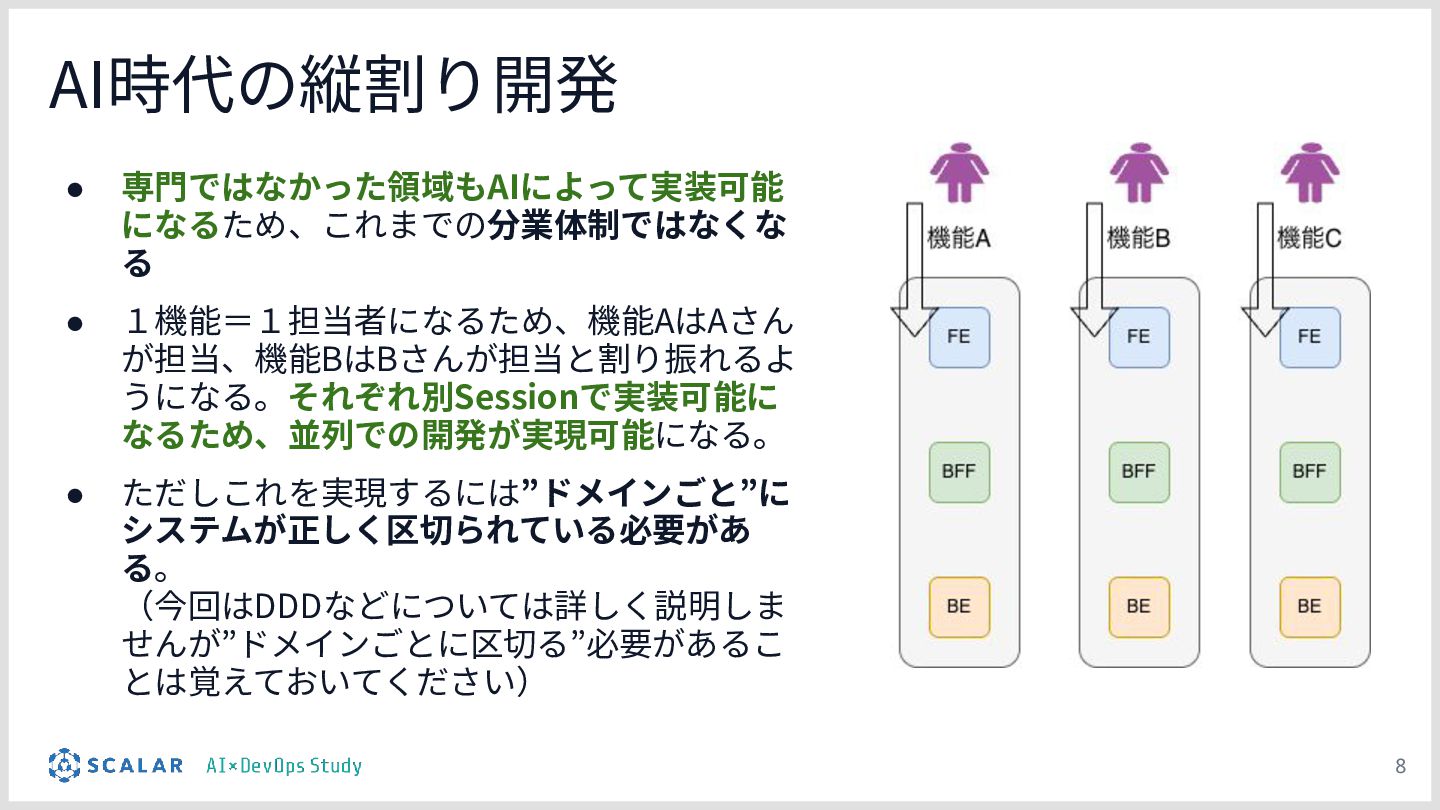 1.ドメインを区切って1人の人間ががFE〜Backendまで実装できる環境を整備する