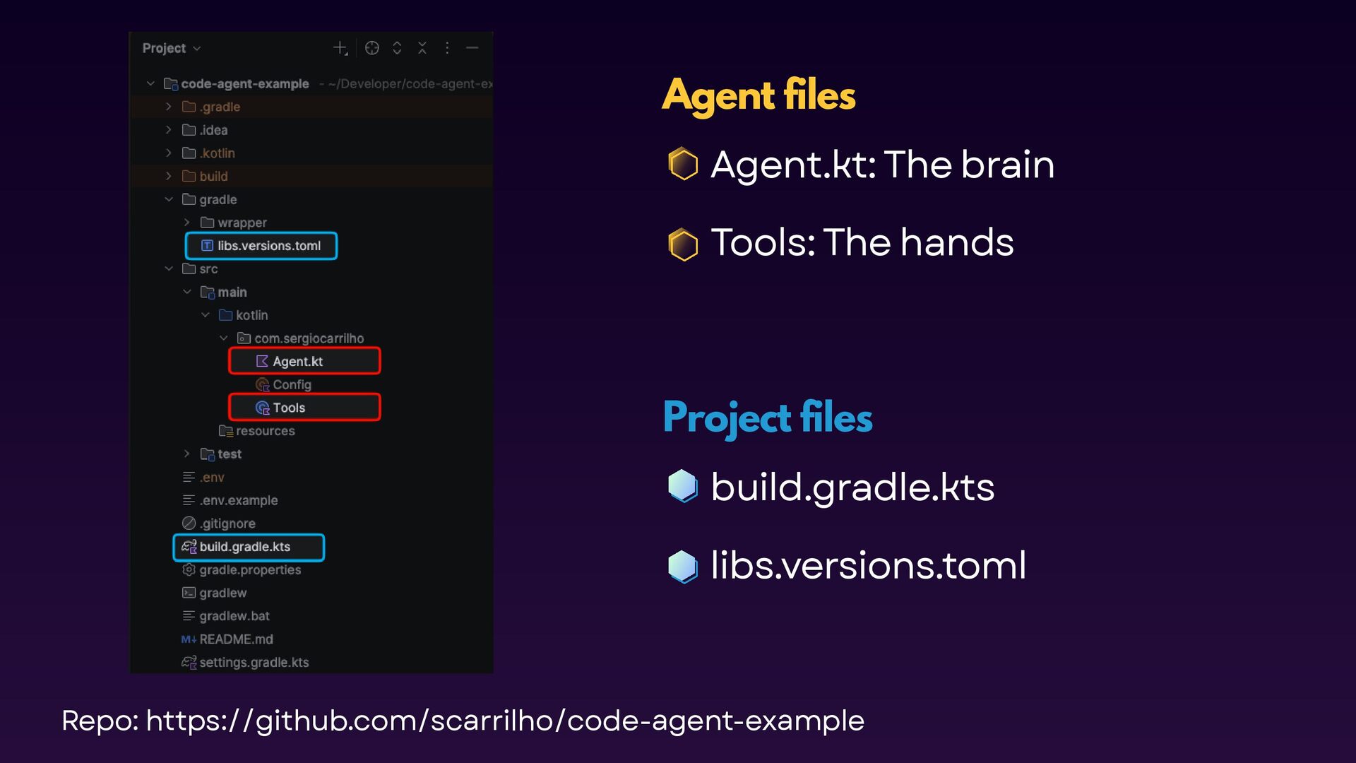 Companion Medium article: https://sergiocarrilho.medium.com/building-an-ai-coding-agent-in-100-lines-of-kotlin-f9af28e6aeb0